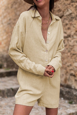 Half Button Shirt Collar Long Sleeve Loose Romper