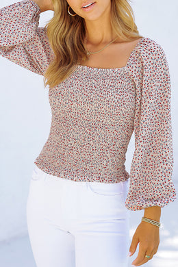 Multicolor Mix Floral Pattern Bubble Sleeve Blouse