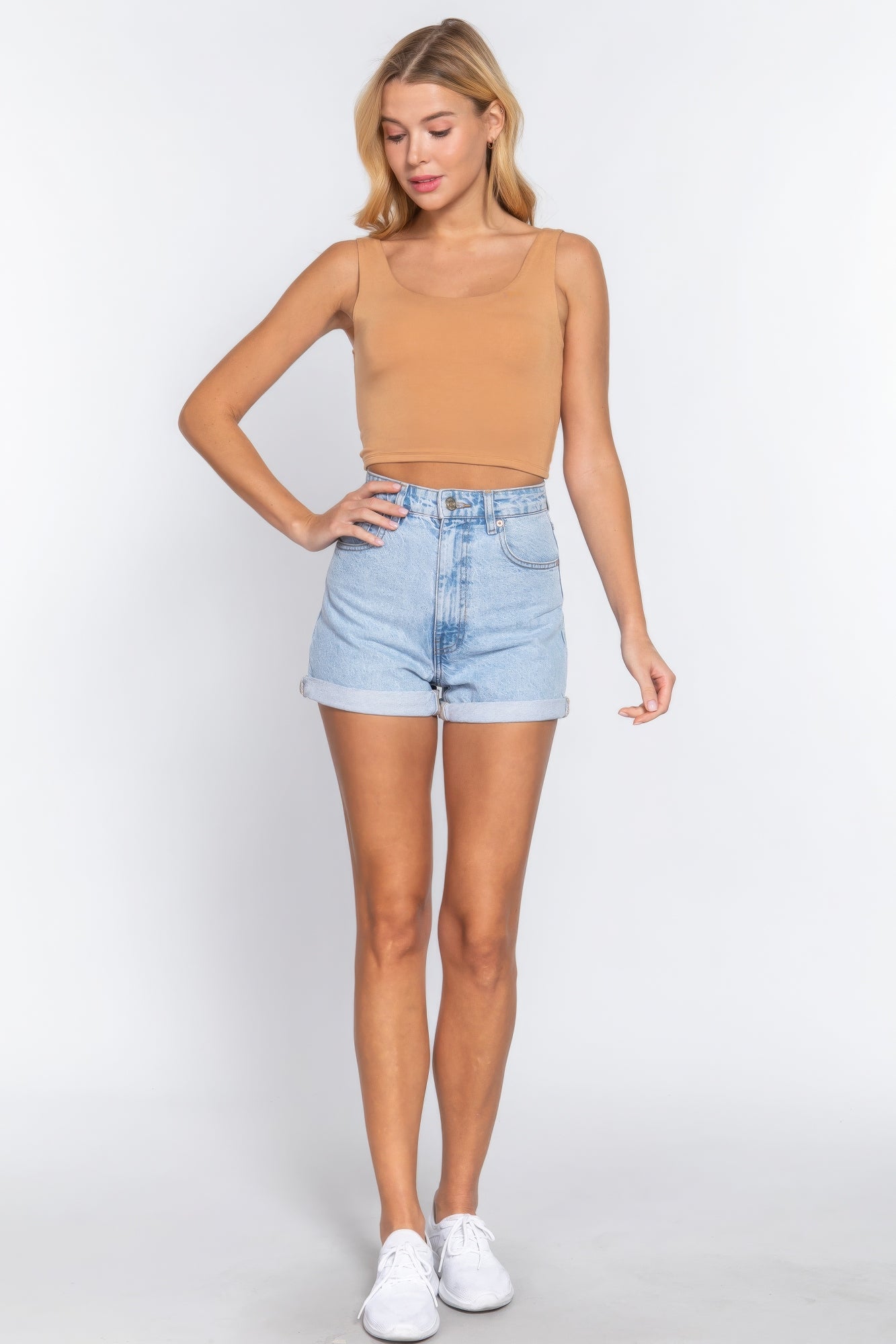 Why Choose Scoop Neck 2 Ply Crop Tank Top?