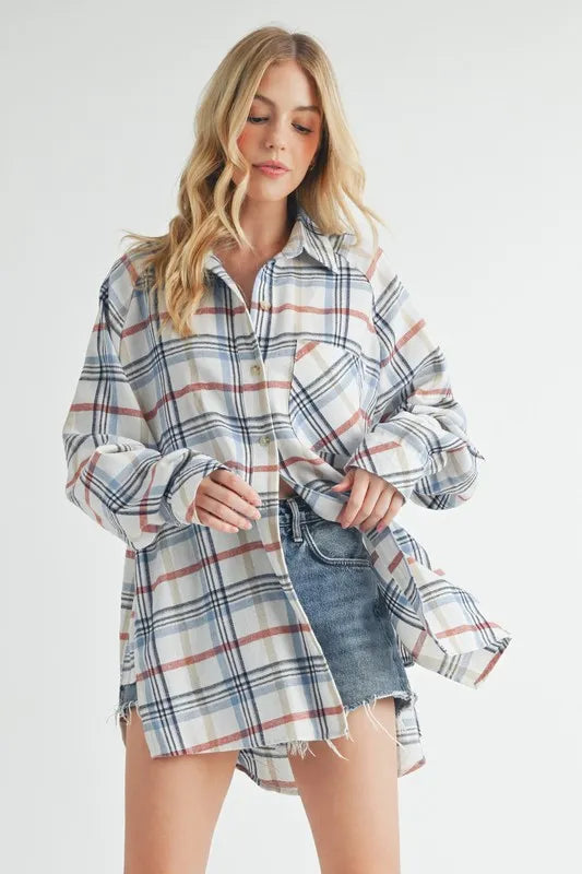 Aemi + Co Plaid Button Up Flannel Shirt with Chest Pocket