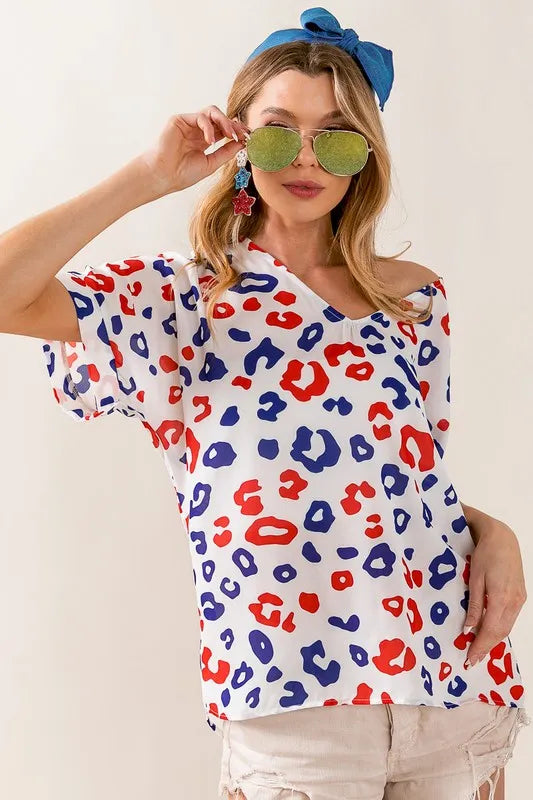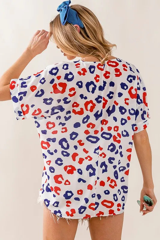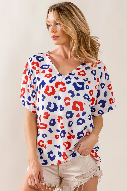 The Leopard V-Neck Short Sleeve Blouse features a classic and trendy leopard print design, adding a touch of wild style to your wardrobe. The V-neckline offers a flattering and versatile look that can be easily dressed up or down. With short sleeves, this blouse is perfect for warmer days and can be paired with jeans or skirts for a chic ensemble.