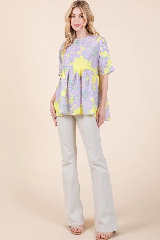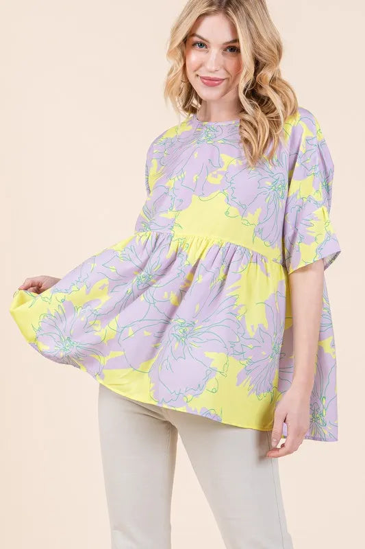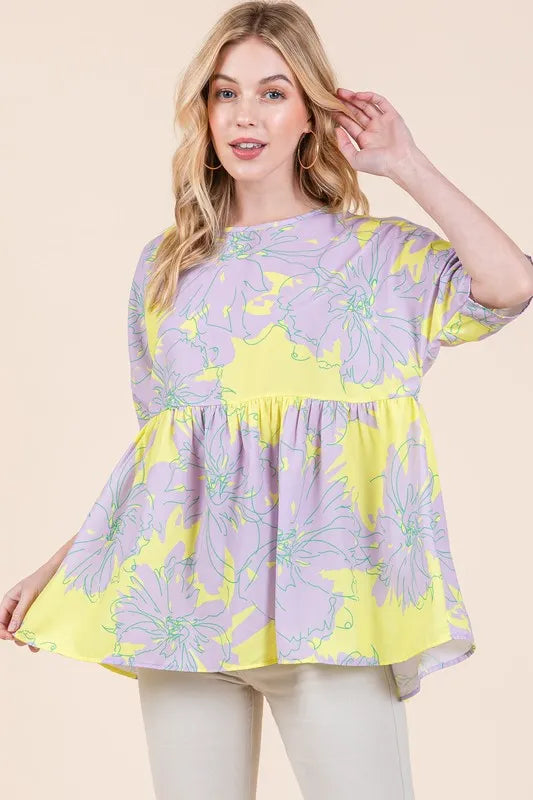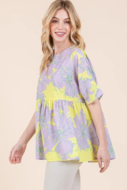 The Floral Babydoll Tunic Top is a charming piece featuring a delicate floral print. Its babydoll silhouette creates a feminine and flattering look. Perfect for casual and dressed-up occasions, this tunic top offers both style and comfort.