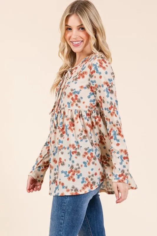 This floral print tie neck long sleeve blouse is both stylish and feminine, adding a touch of elegance to your wardrobe. Pair it with high-waisted trousers or a skirt for a chic and sophisticated look. The tie neck detail and floral print add unique and trendy elements to the overall outfit.