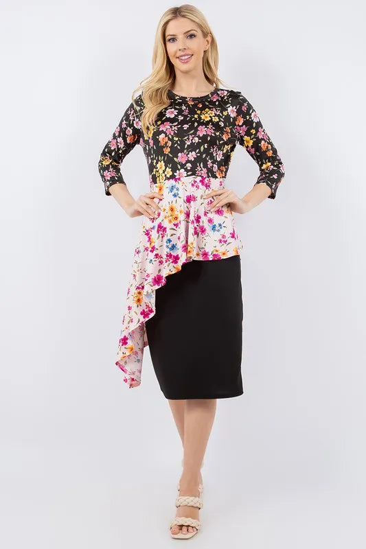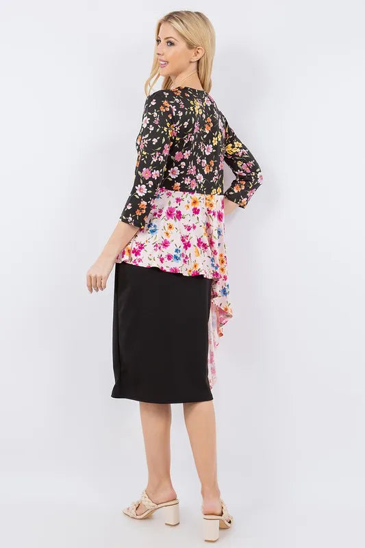 The Floral Asymmetrical Hemline Round Neck Top features a charming floral pattern that adds a feminine touch to your outfit. With an asymmetrical hemline, this top offers a unique and stylish silhouette. Perfect for adding a touch of elegance and flair to your look, this top is versatile for a variety of occasions.
