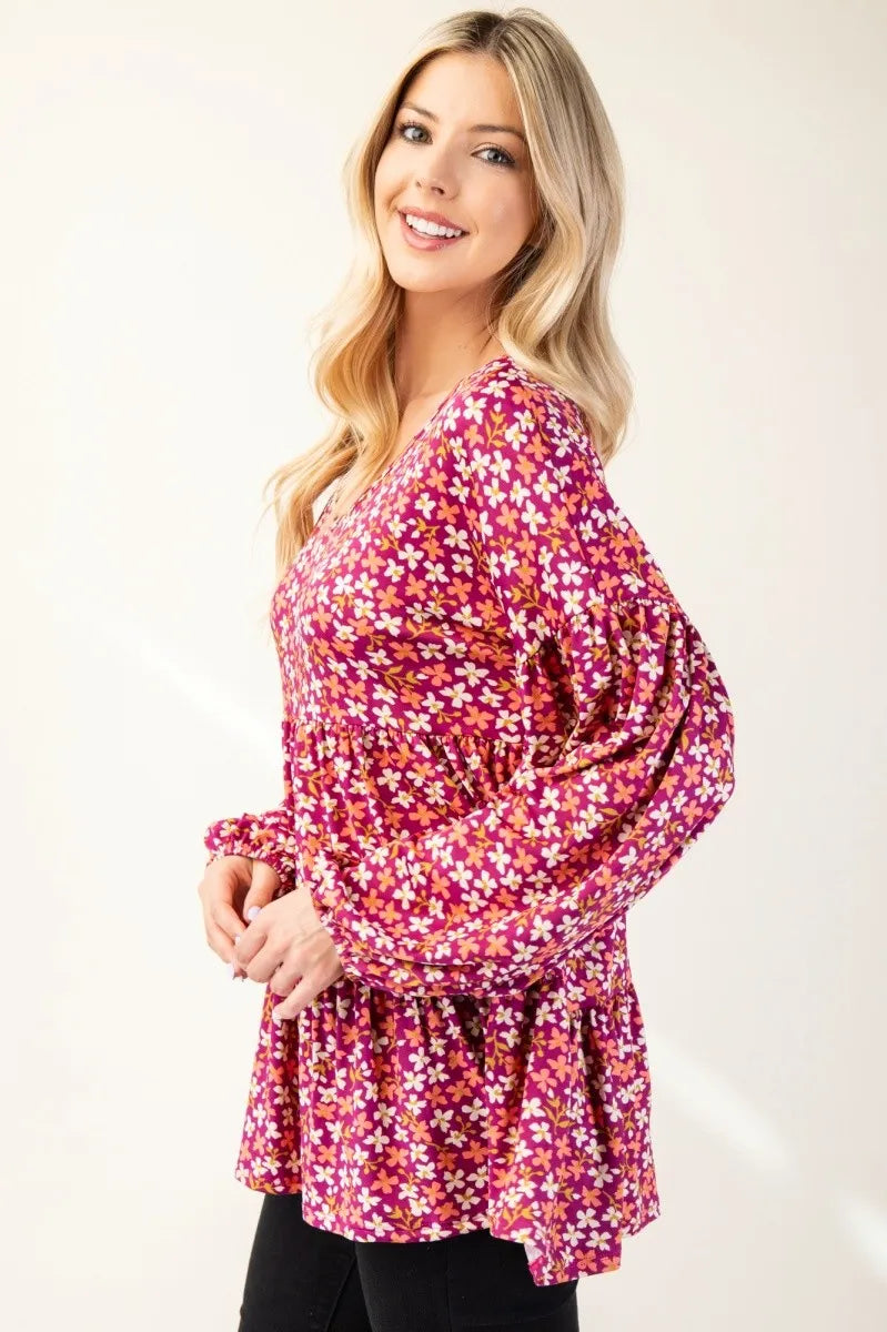 This Floral V-Neck Balloon Sleeve Blouse is inspired by a beautiful floral pattern for a romantic and fresh atmosphere. The V-neck design shows the graceful temperament of women, and the balloon sleeve design adds a hint of playful and fashionable sense. Whether it is paired with jeans or skirts, it can show a sweet and stylish style. This shirt is perfect for many occasions and gives you a charming flower charm in your daily life.