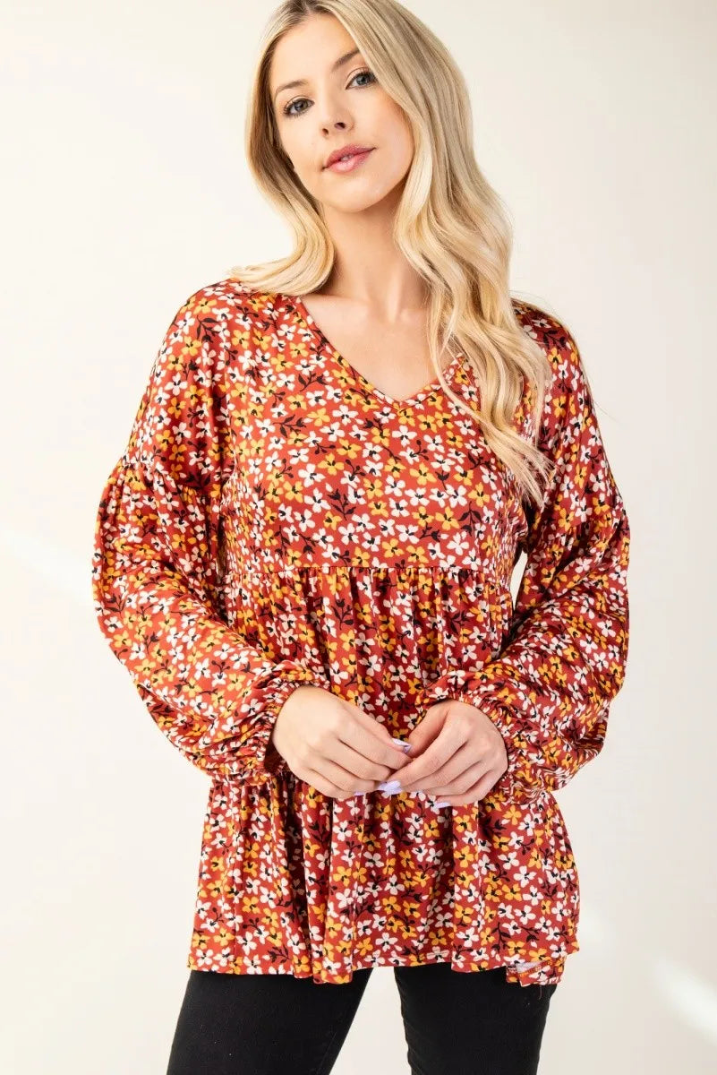 This Floral V-Neck Balloon Sleeve Blouse is inspired by a beautiful floral pattern for a romantic and fresh atmosphere. The V-neck design shows the graceful temperament of women, and the balloon sleeve design adds a hint of playful and fashionable sense. Whether it is paired with jeans or skirts, it can show a sweet and stylish style. This shirt is perfect for many occasions and gives you a charming flower charm in your daily life.