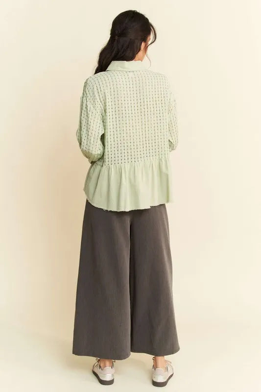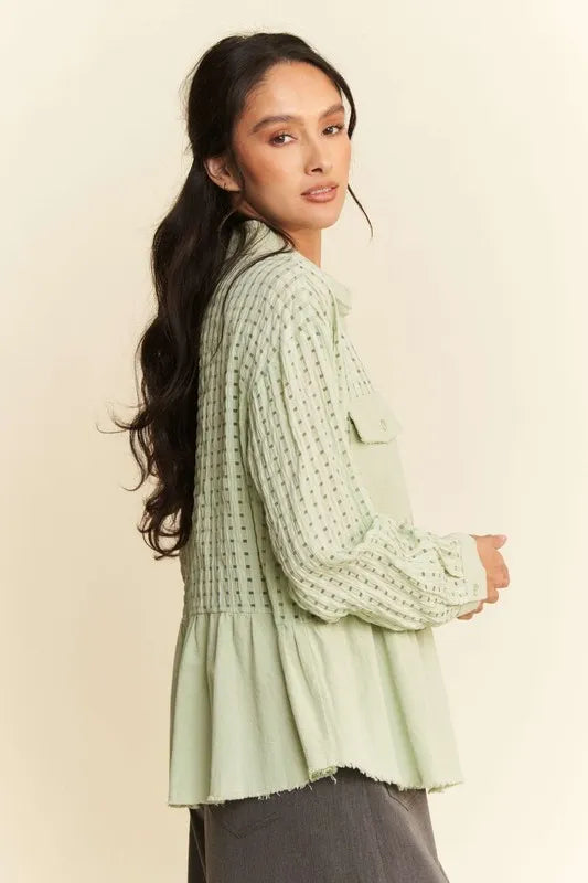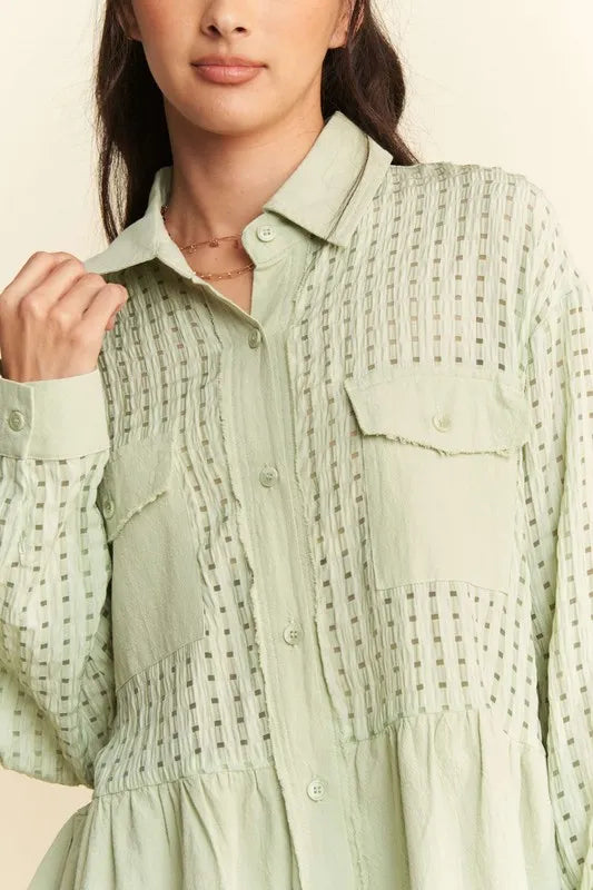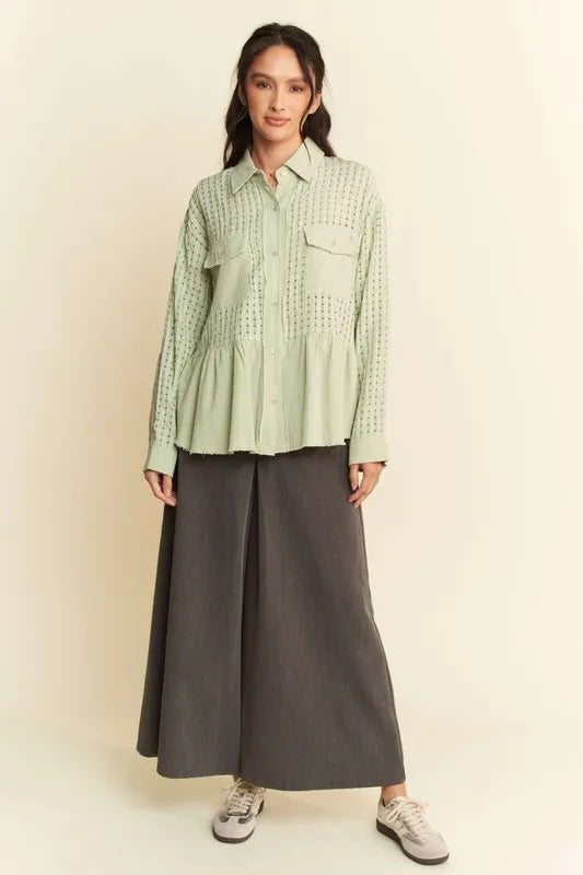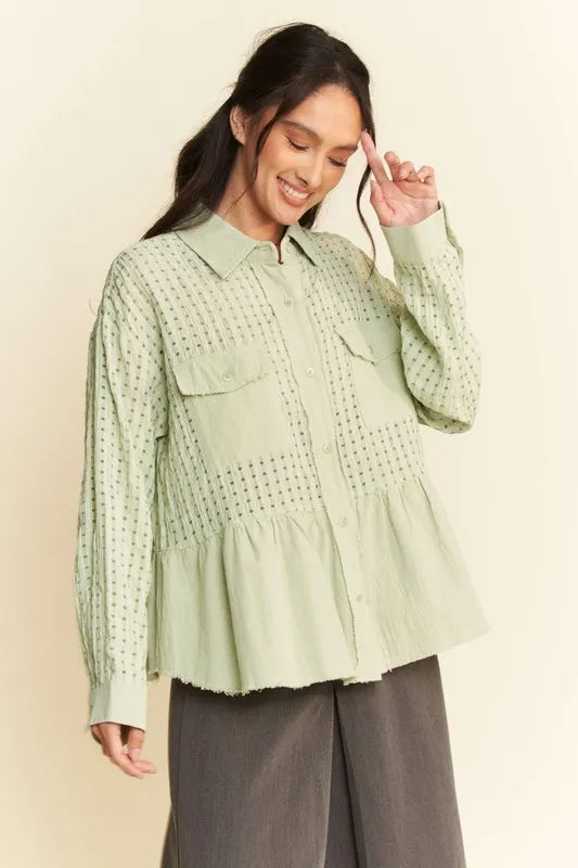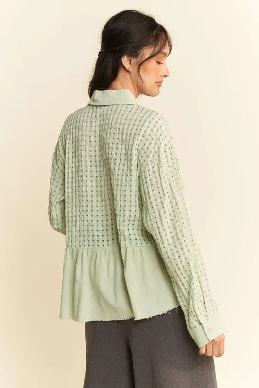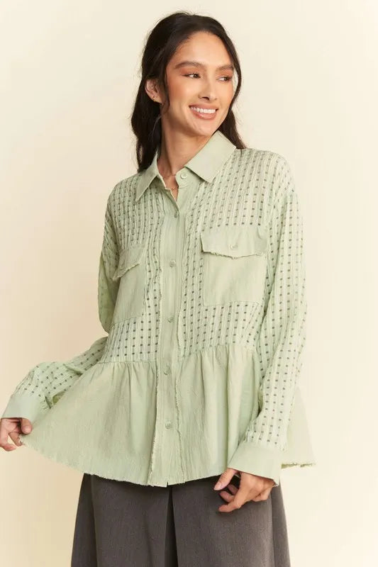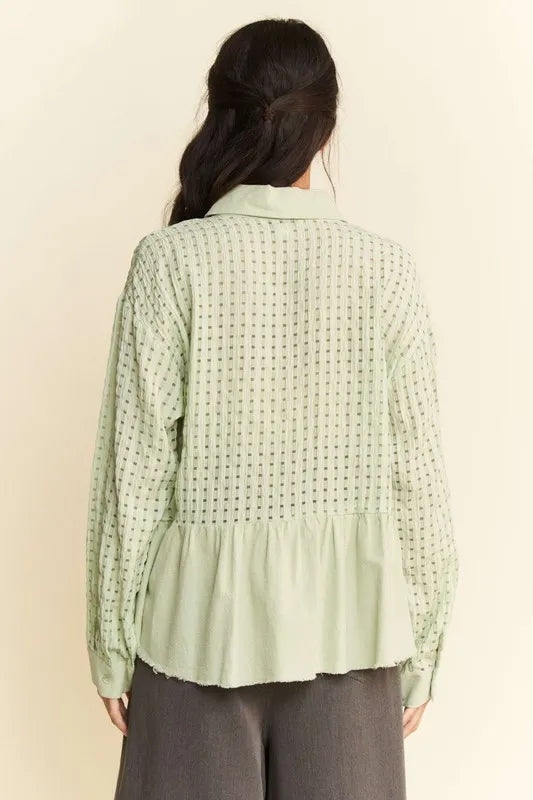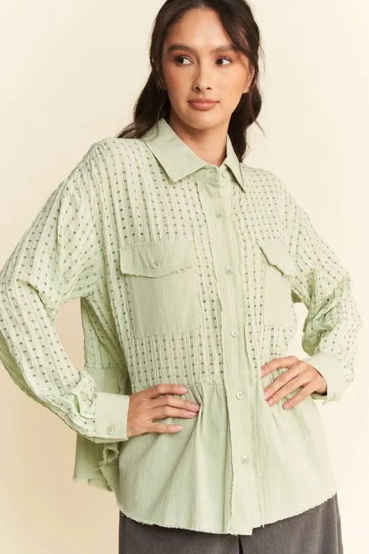 The Garment Washed Jacquard Button Front Shirt is a classic and sophisticated wardrobe essential with a stylish twist. The garment washed finish gives the shirt a soft and lived-in look and feel. The jacquard detailing adds texture and depth to the fabric, providing a subtle and elegant touch. The button-front closure offers a polished and versatile design. This shirt is perfect for a variety of occasions, from work meetings to weekend outings. Pair it with dress pants for a professional look or with jeans for a more laid-back style. This versatile shirt is a timeless and stylish addition to any wardrobe.