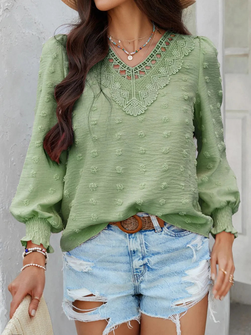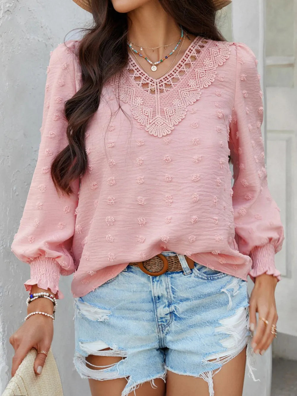- Features: Lace Detail, Swiss Dot