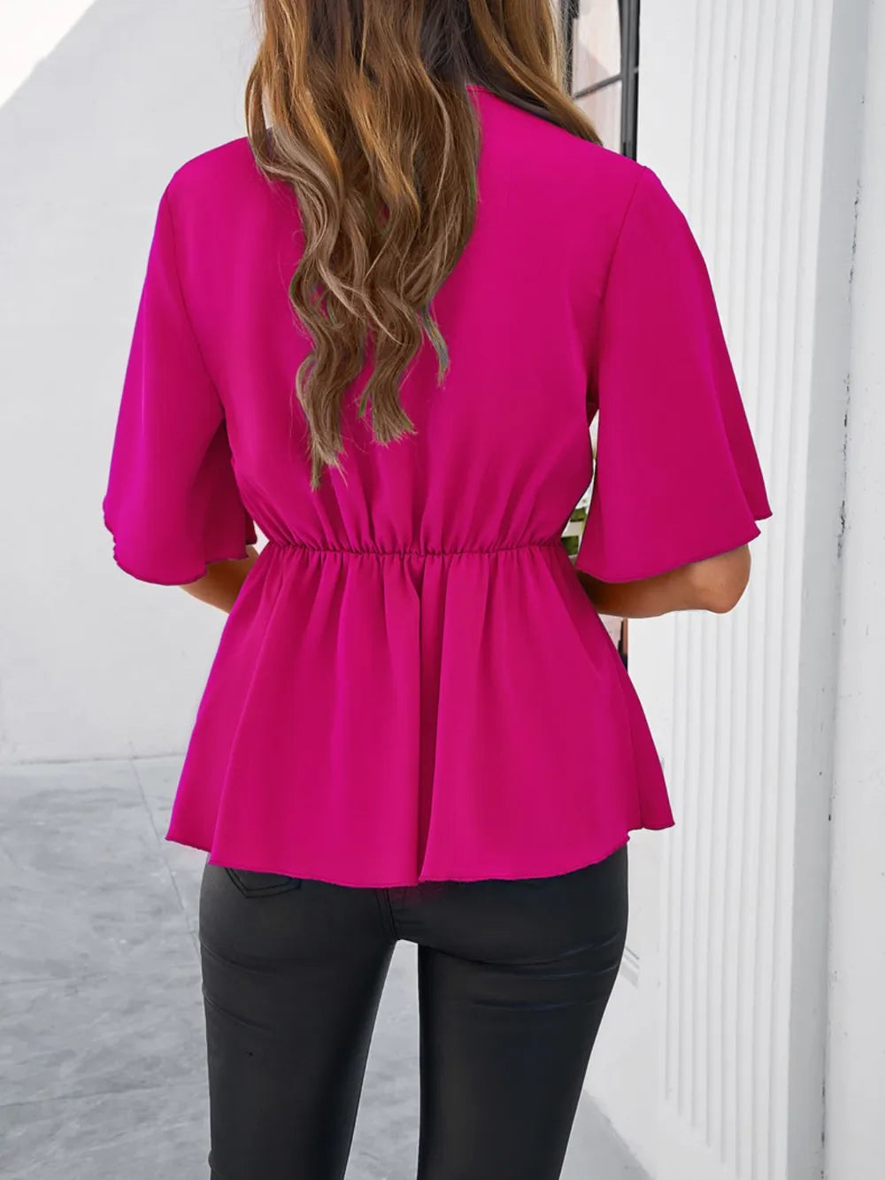 - Features: Tied, Ruched, Peplum