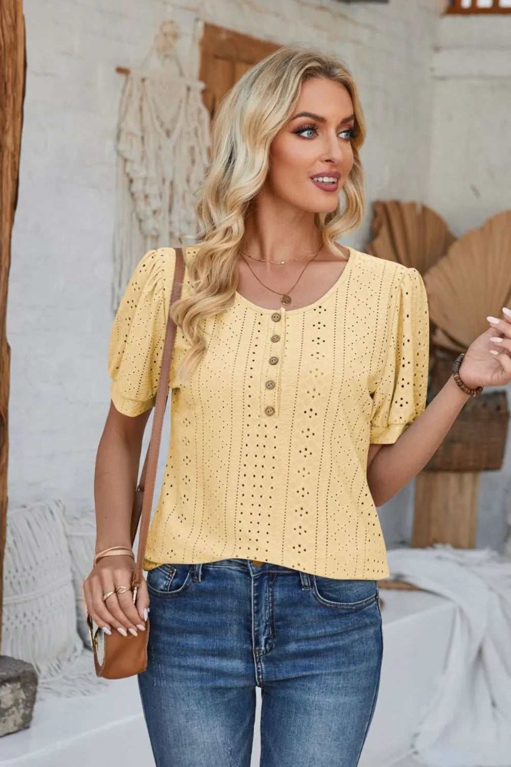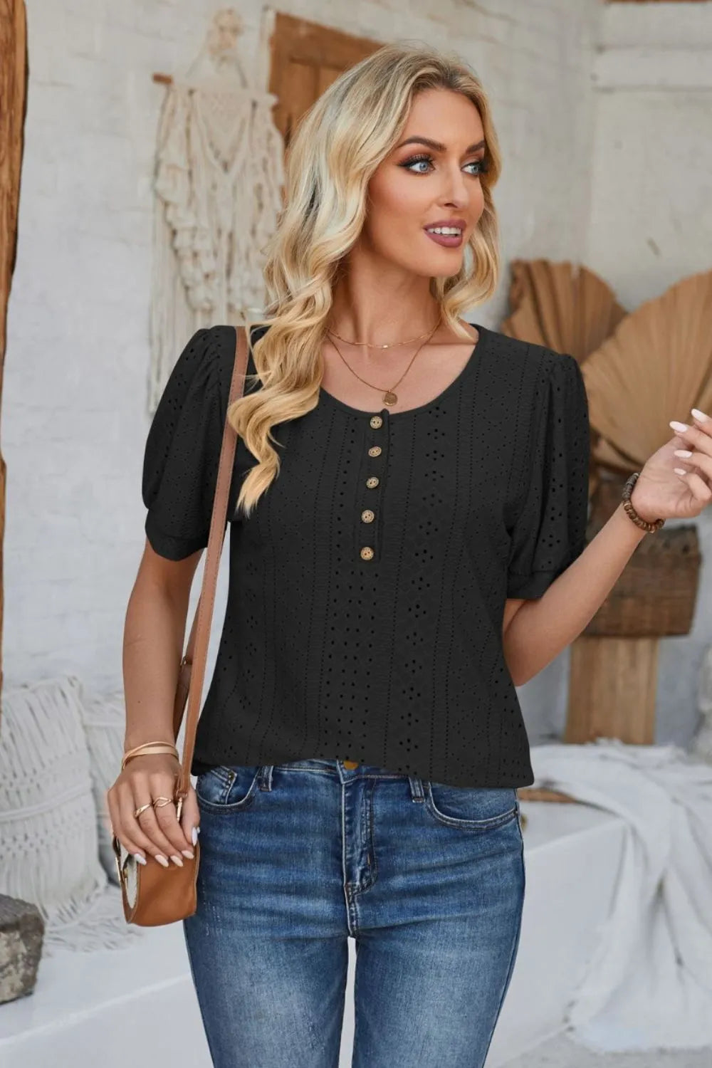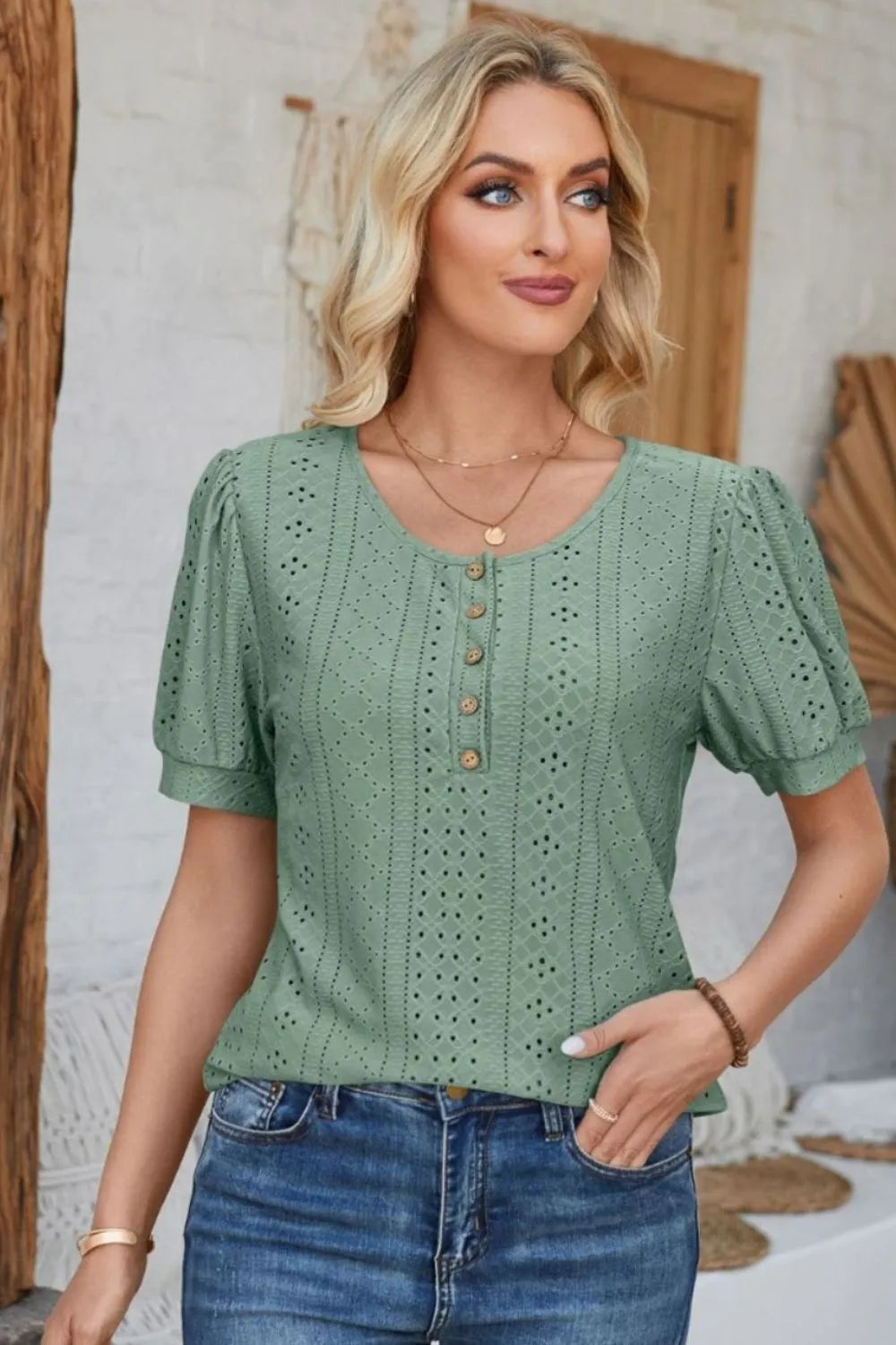 - Features: Buttoned, Eyelet