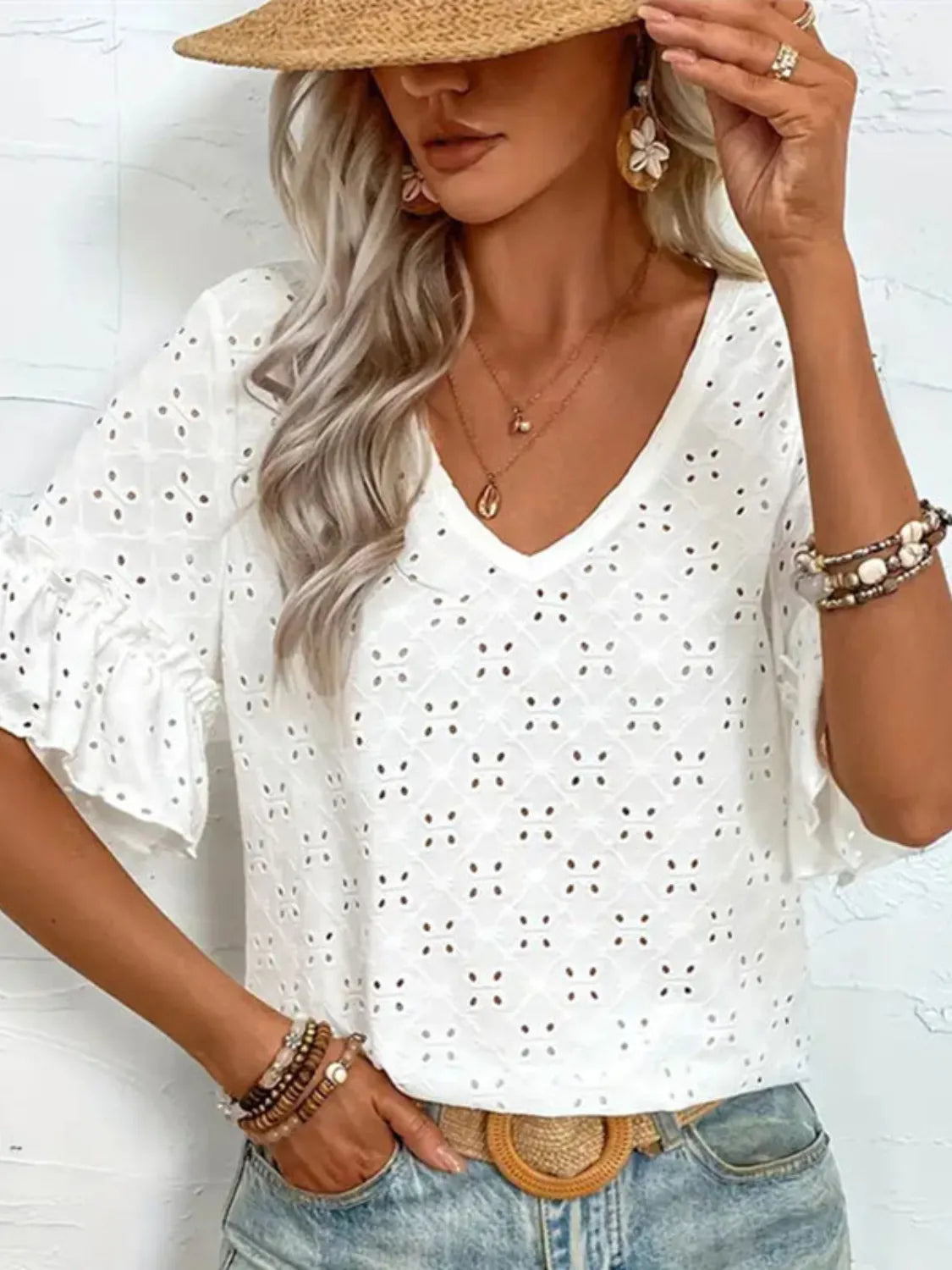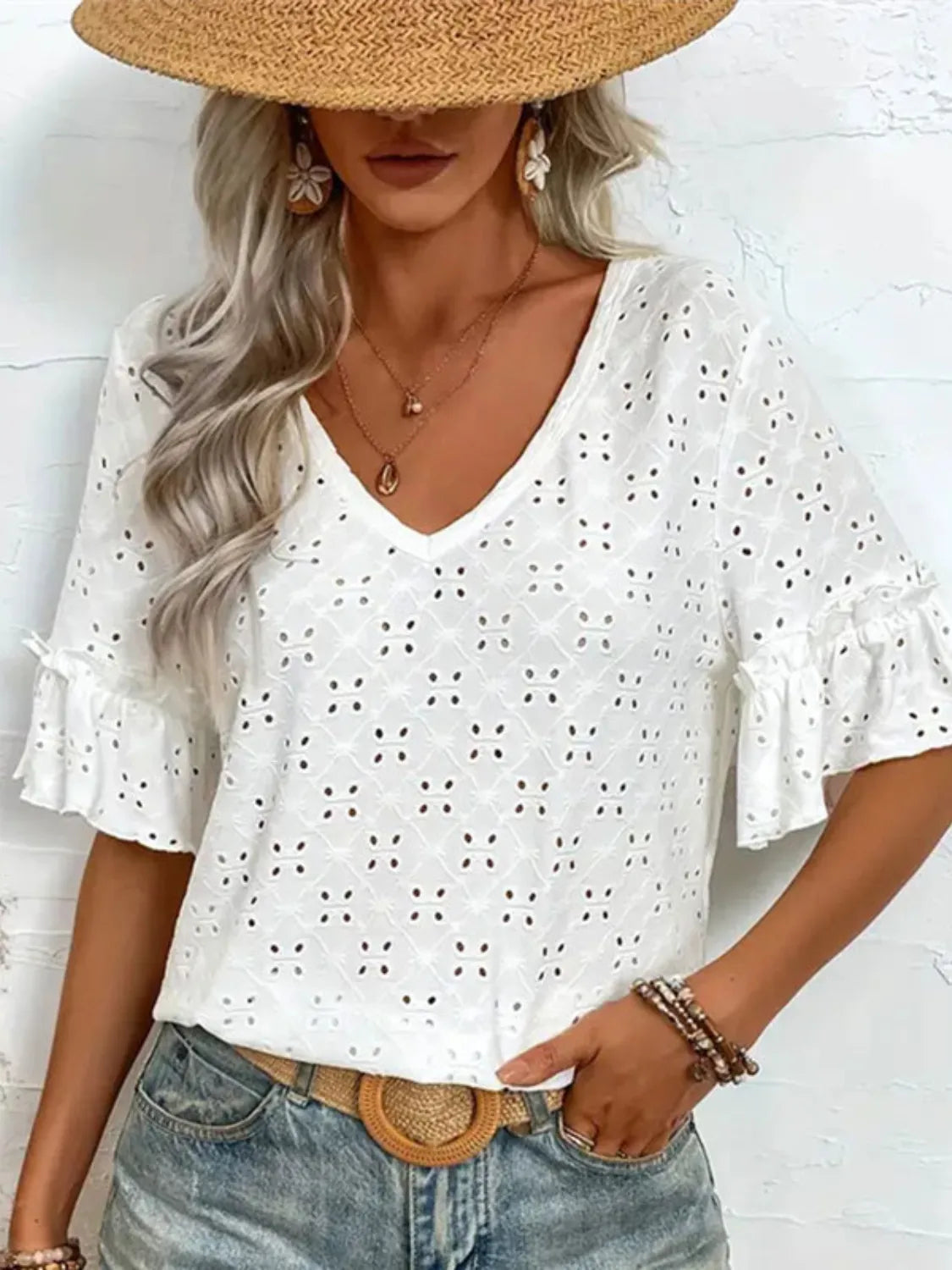 - Features: Eyelet, Frill