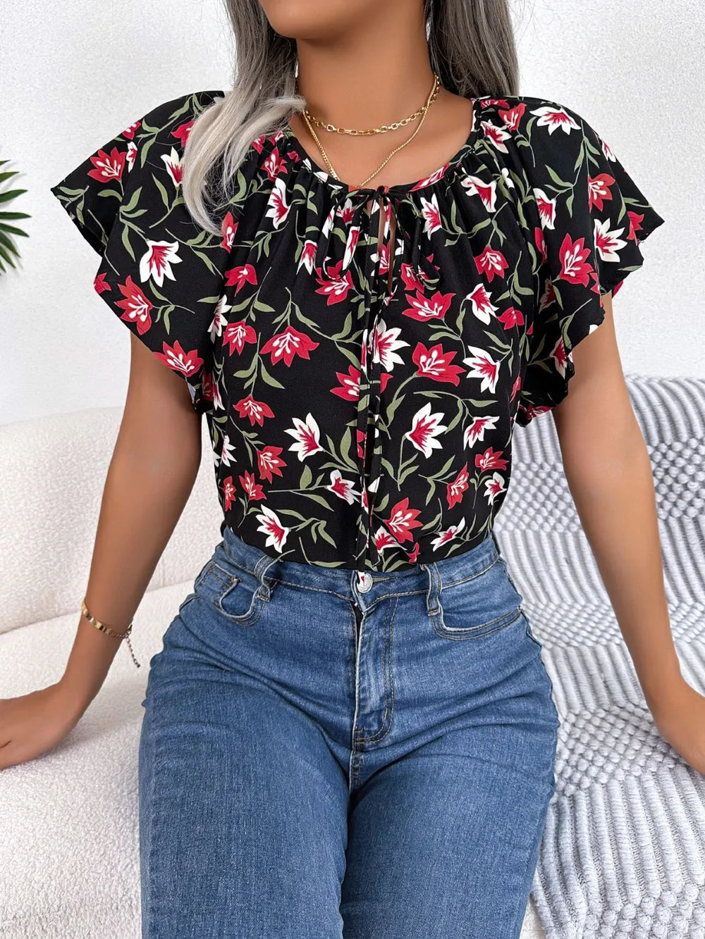 - Features: Tied, Ruched