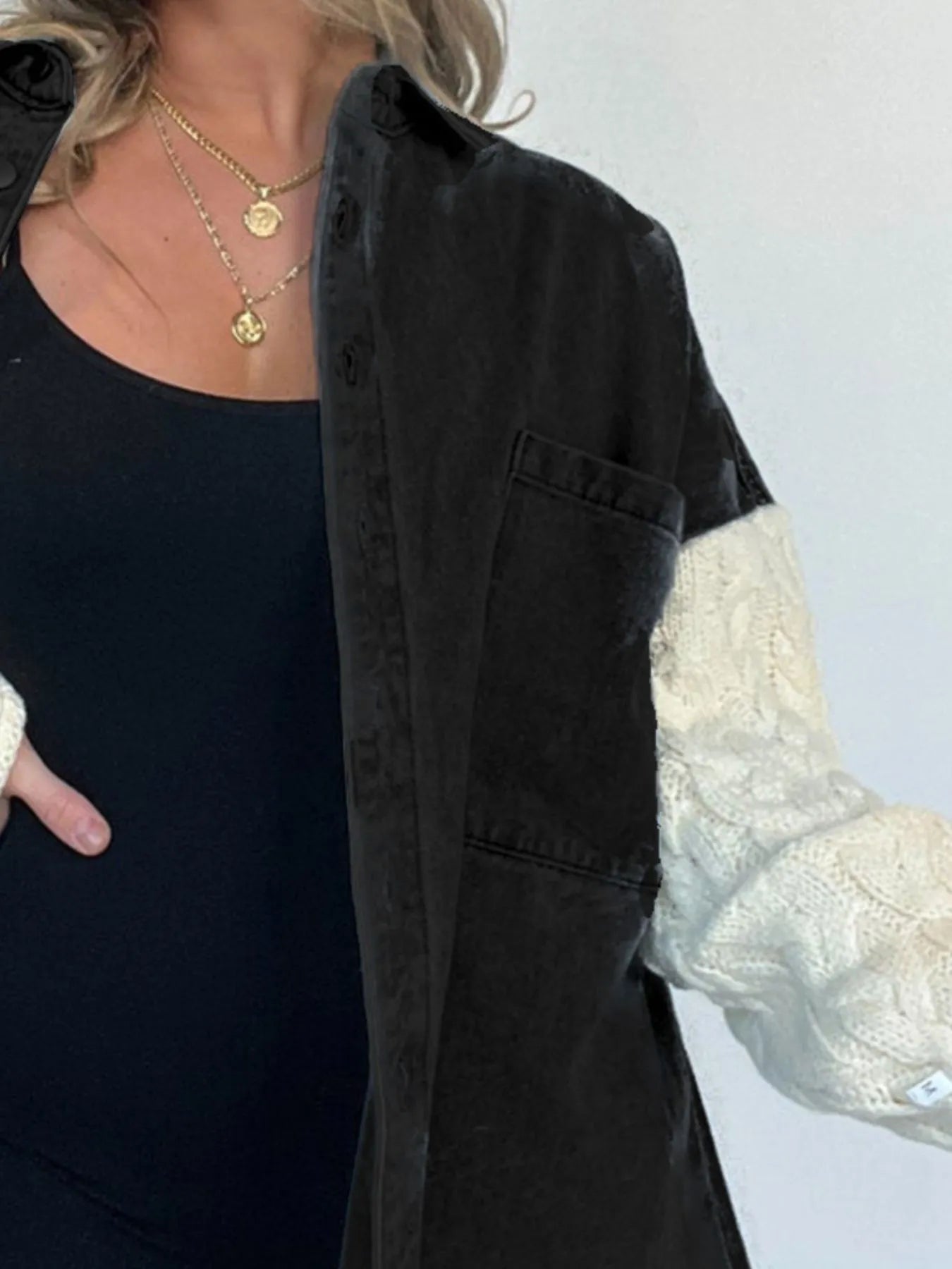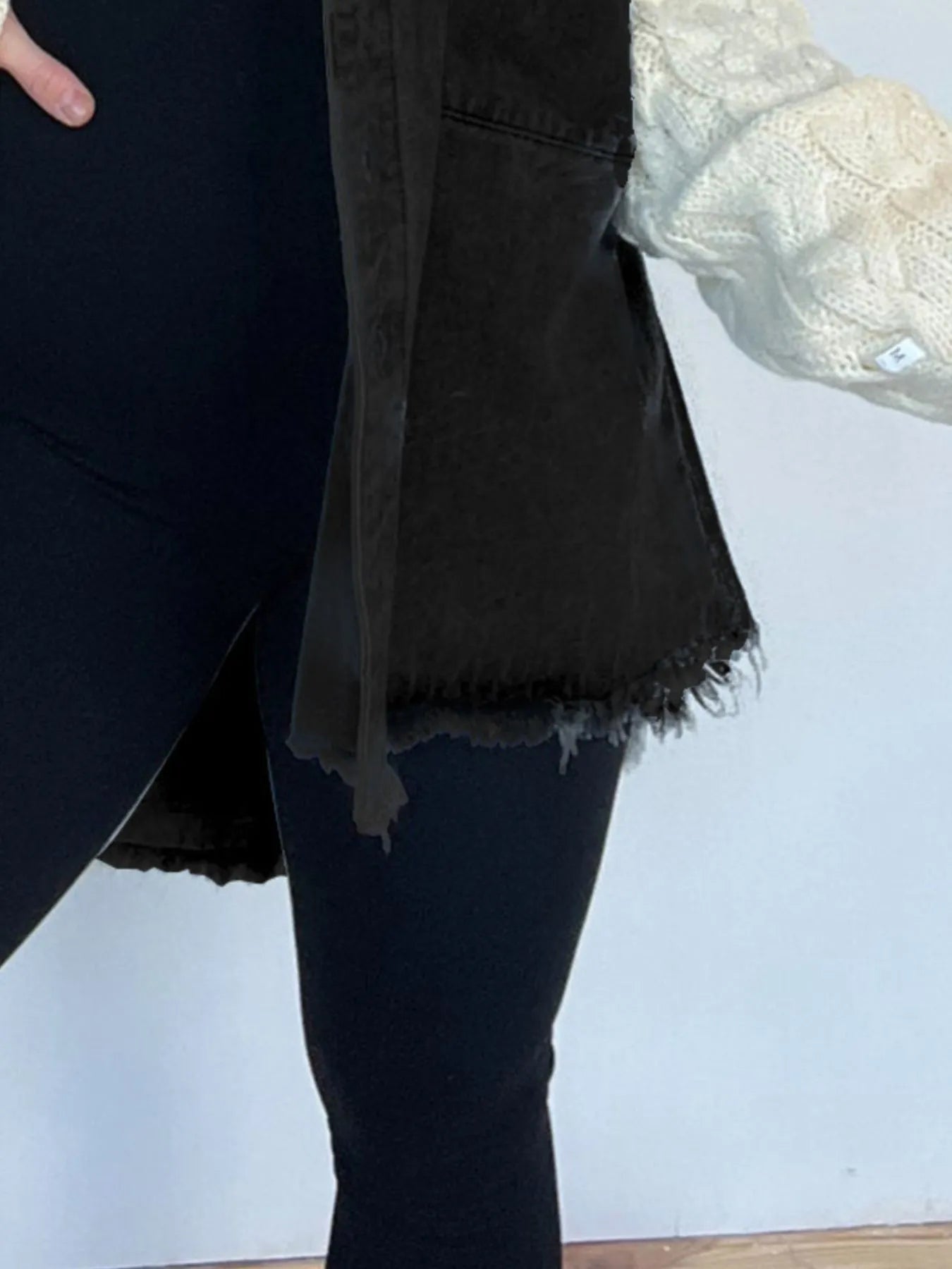 - Features:Raw Hem,Pocketed,Cable-Knit