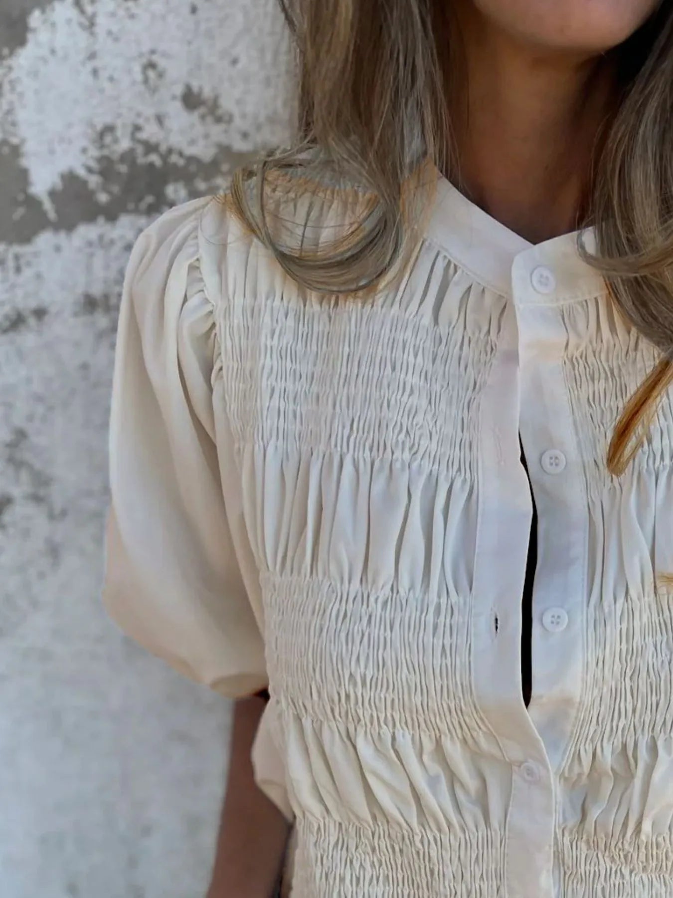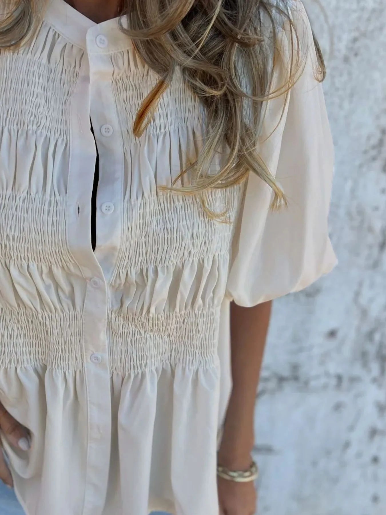 - Features:Buttoned,Smocked,Ruched