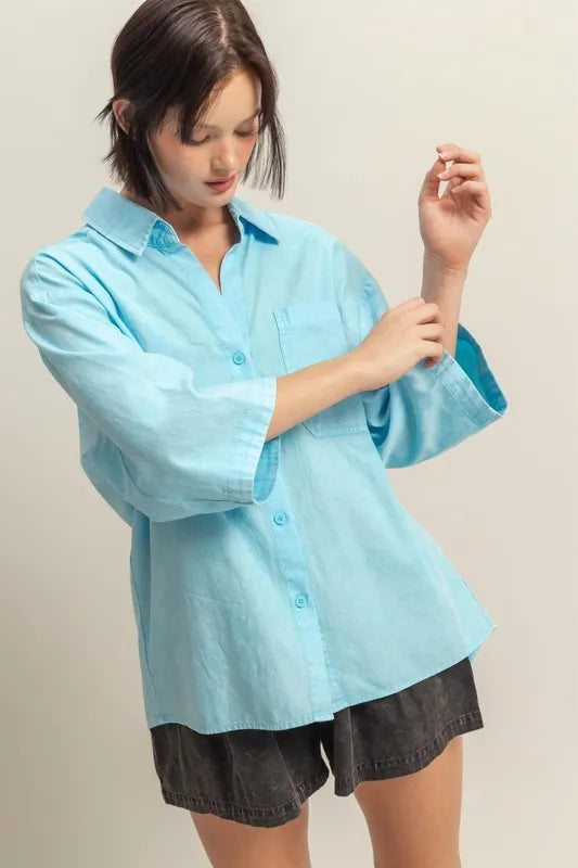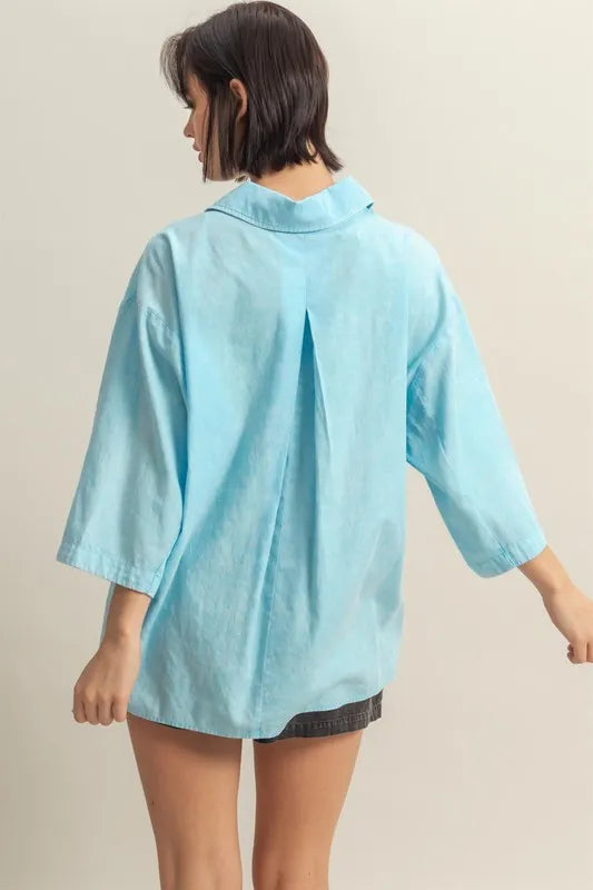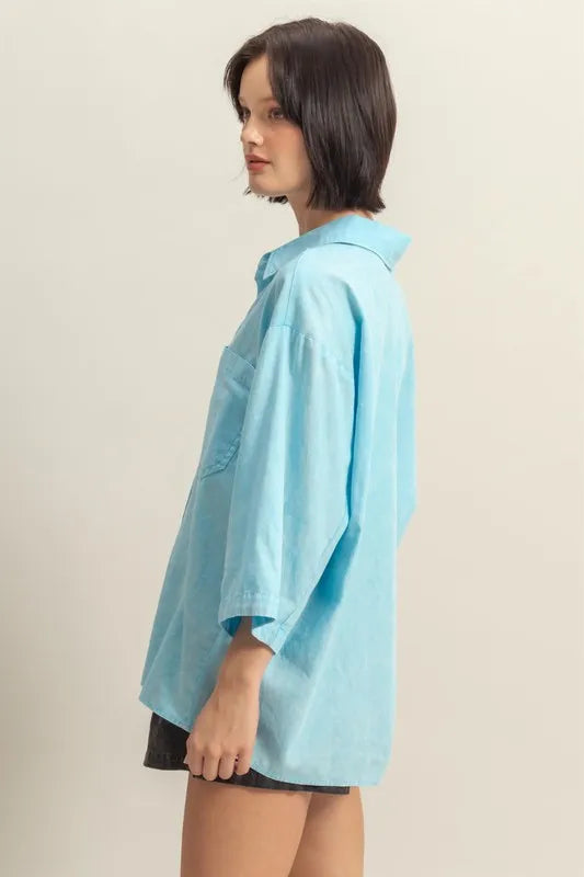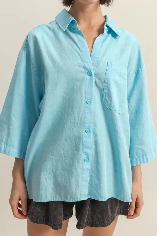 The Button Down Collared Neck Relaxed Fit Shirt is a classic and versatile piece that can elevate your wardrobe. With a traditional button-down design and a collared neck, this shirt offers a polished and timeless look. The relaxed fit adds a casual and comfortable element, making it suitable for various occasions. Whether paired with tailored pants for a professional setting or with jeans for a more laid-back vibe, this shirt is a versatile and must-have item that can be styled in a variety of ways for a chic and put-together outfit.