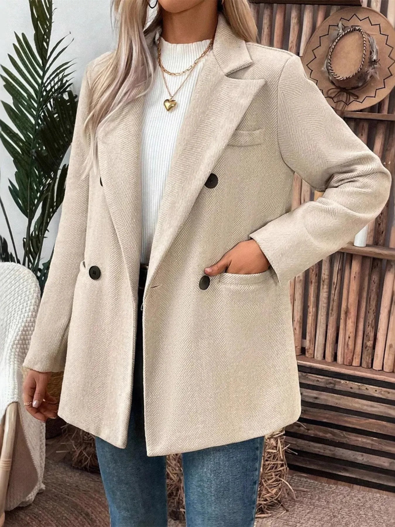 - Features:Buttoned,Pocketed,Double-breasted