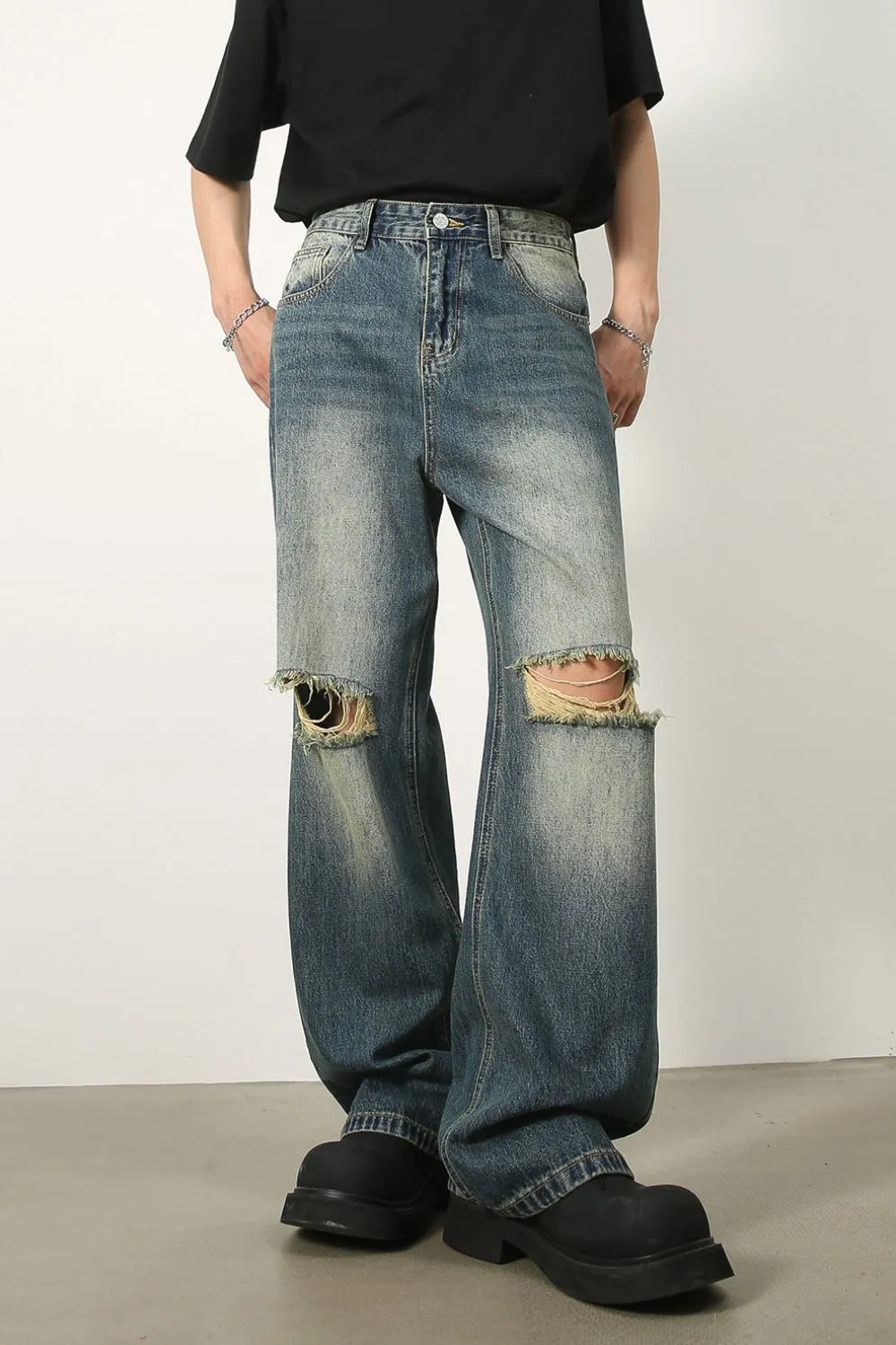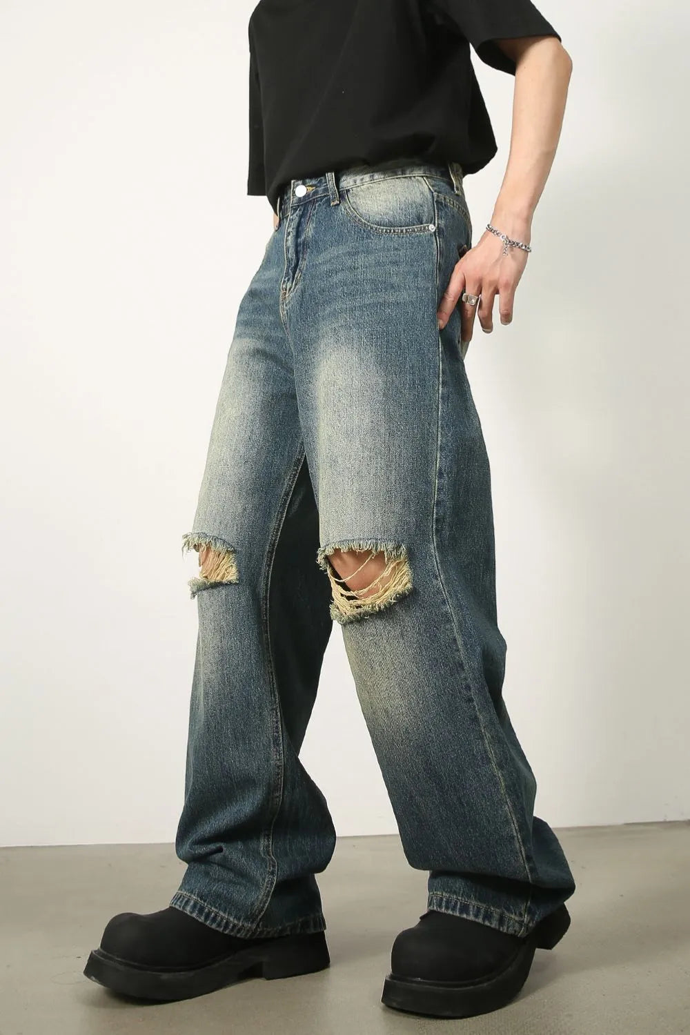 - Features: Basic style, Distressed, Raw Hem