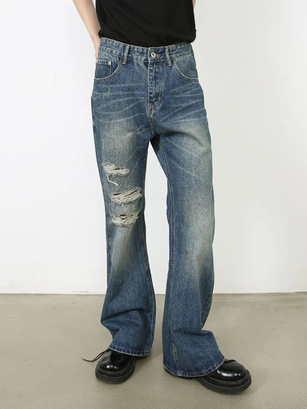 - Features: Basic style, Distressed, Buttoned, Pocketed