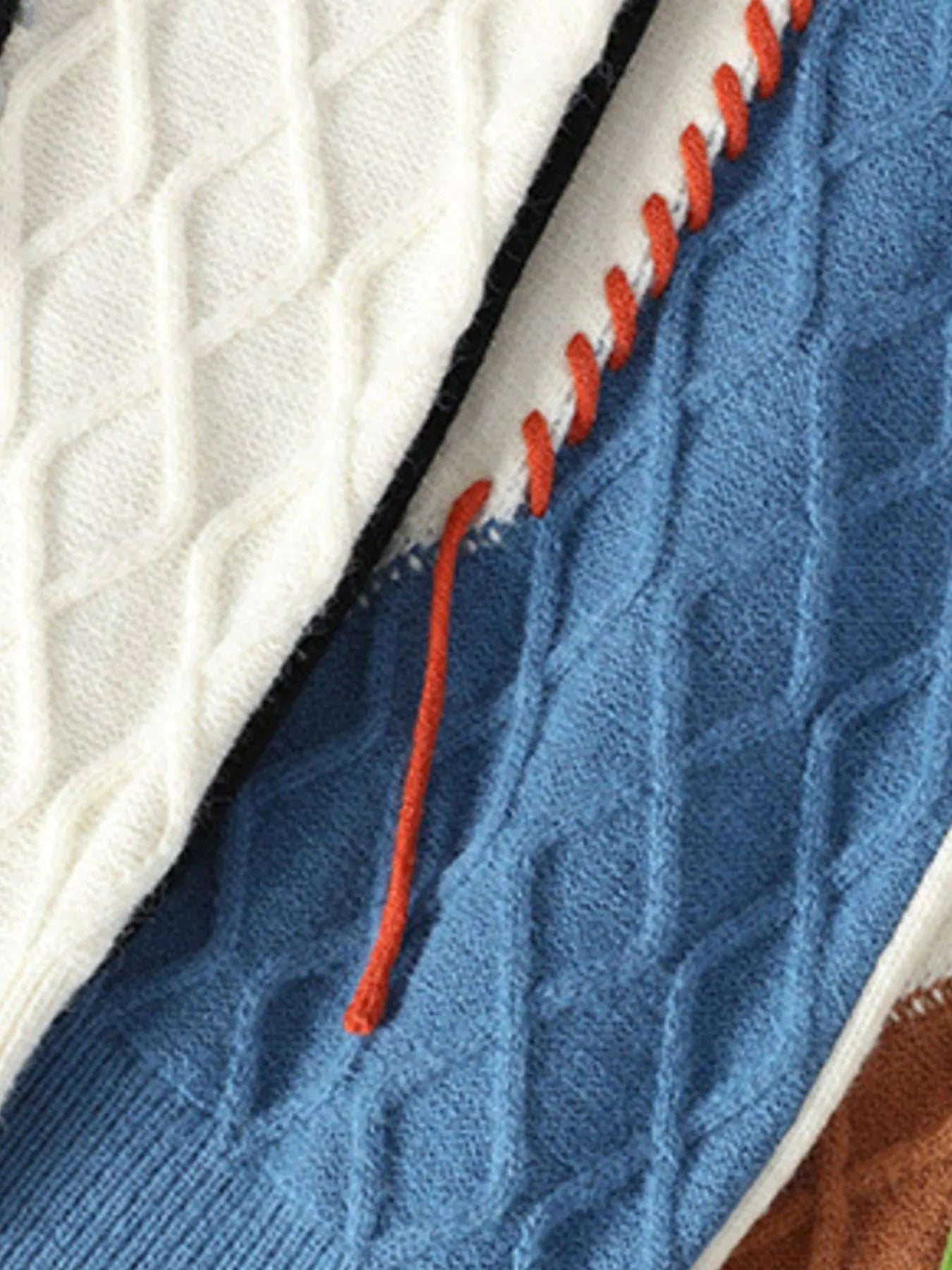 - Features:Cable-Knit,Contrast Stitching
