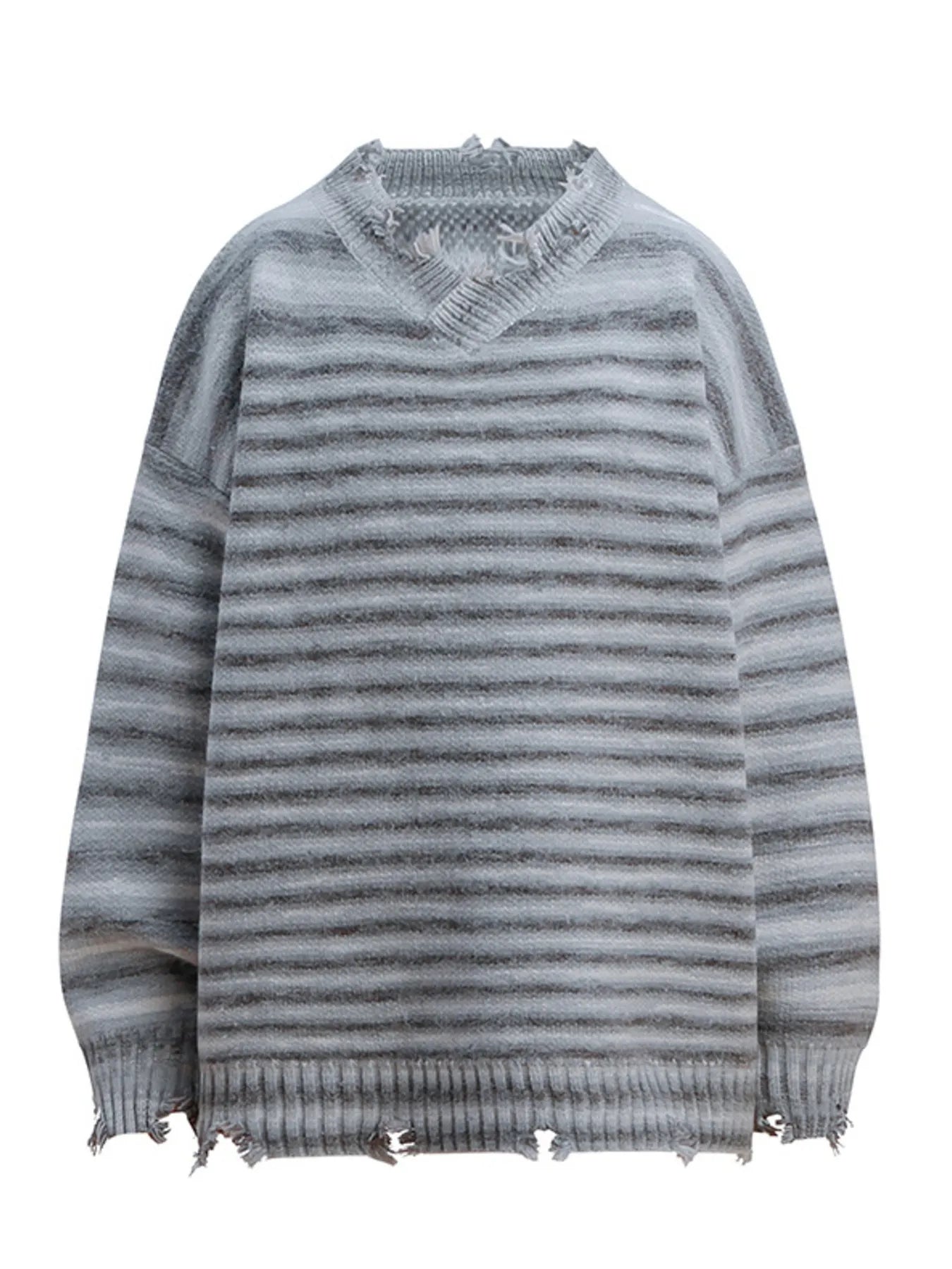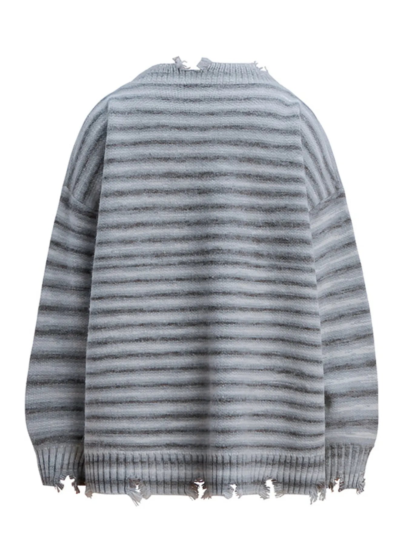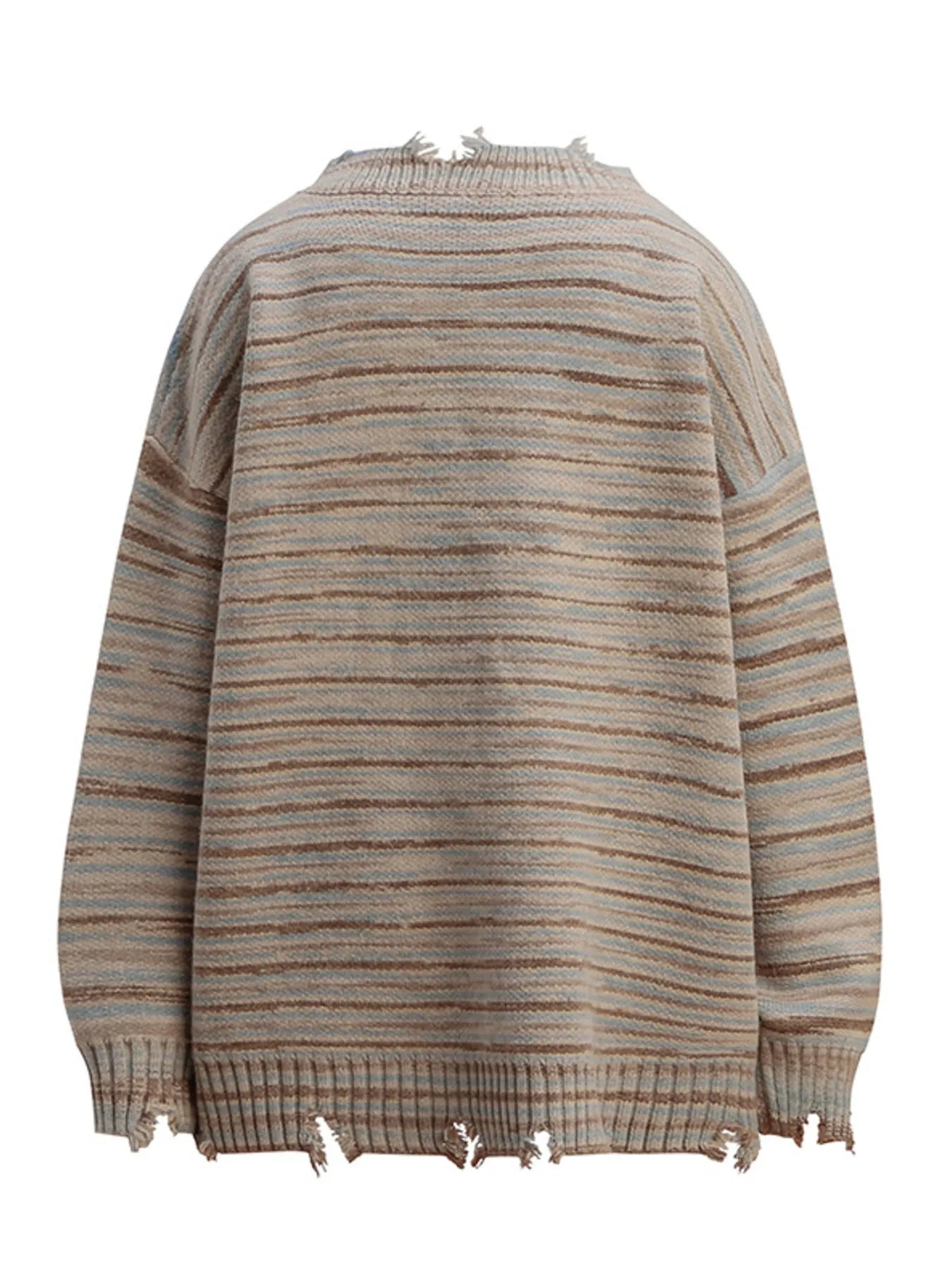 Men's Striped Frayed Hem Long Sleeve Sweater