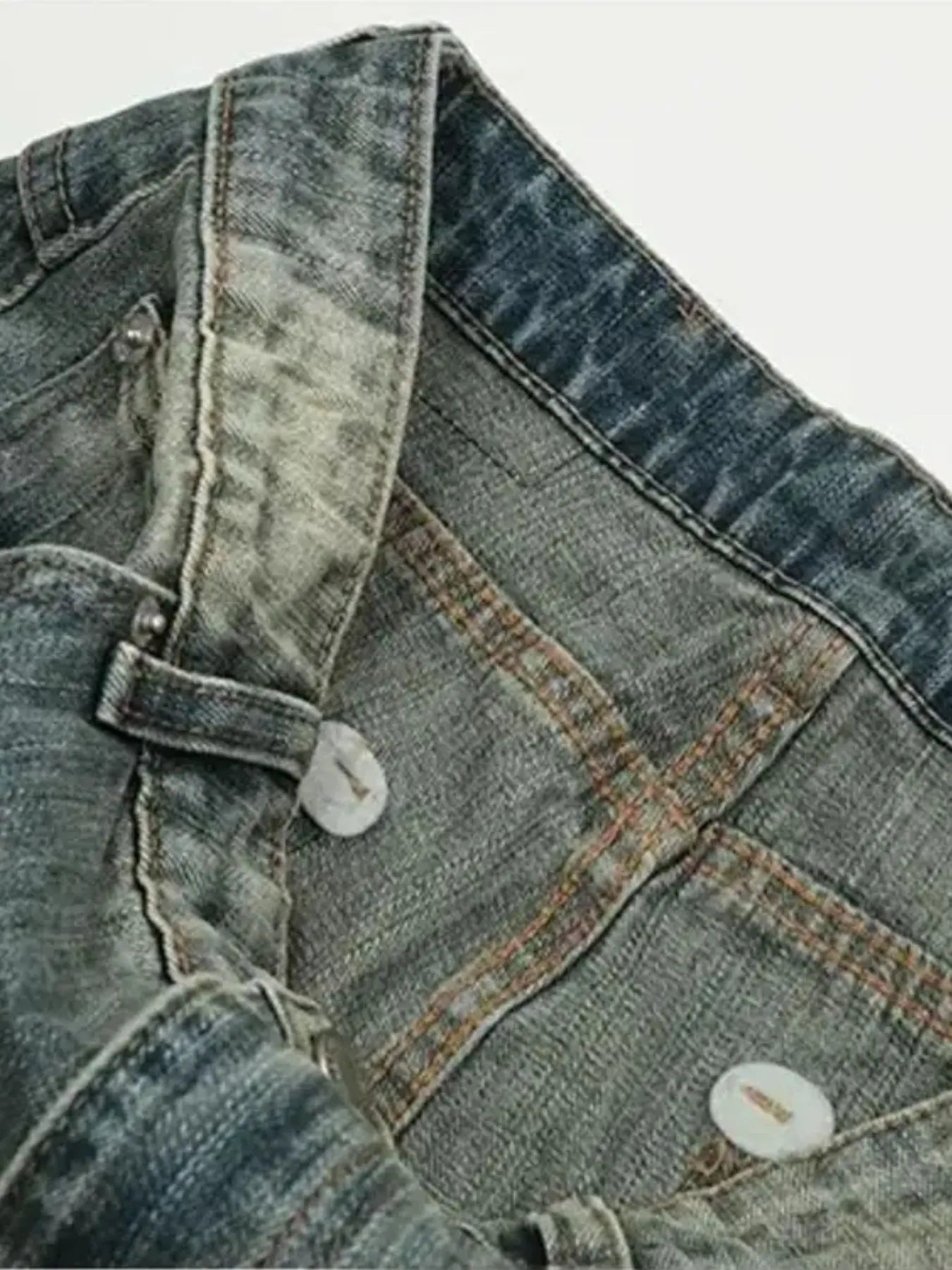 - Features:Basic style,Pocketed,Cat's whisker,Washed