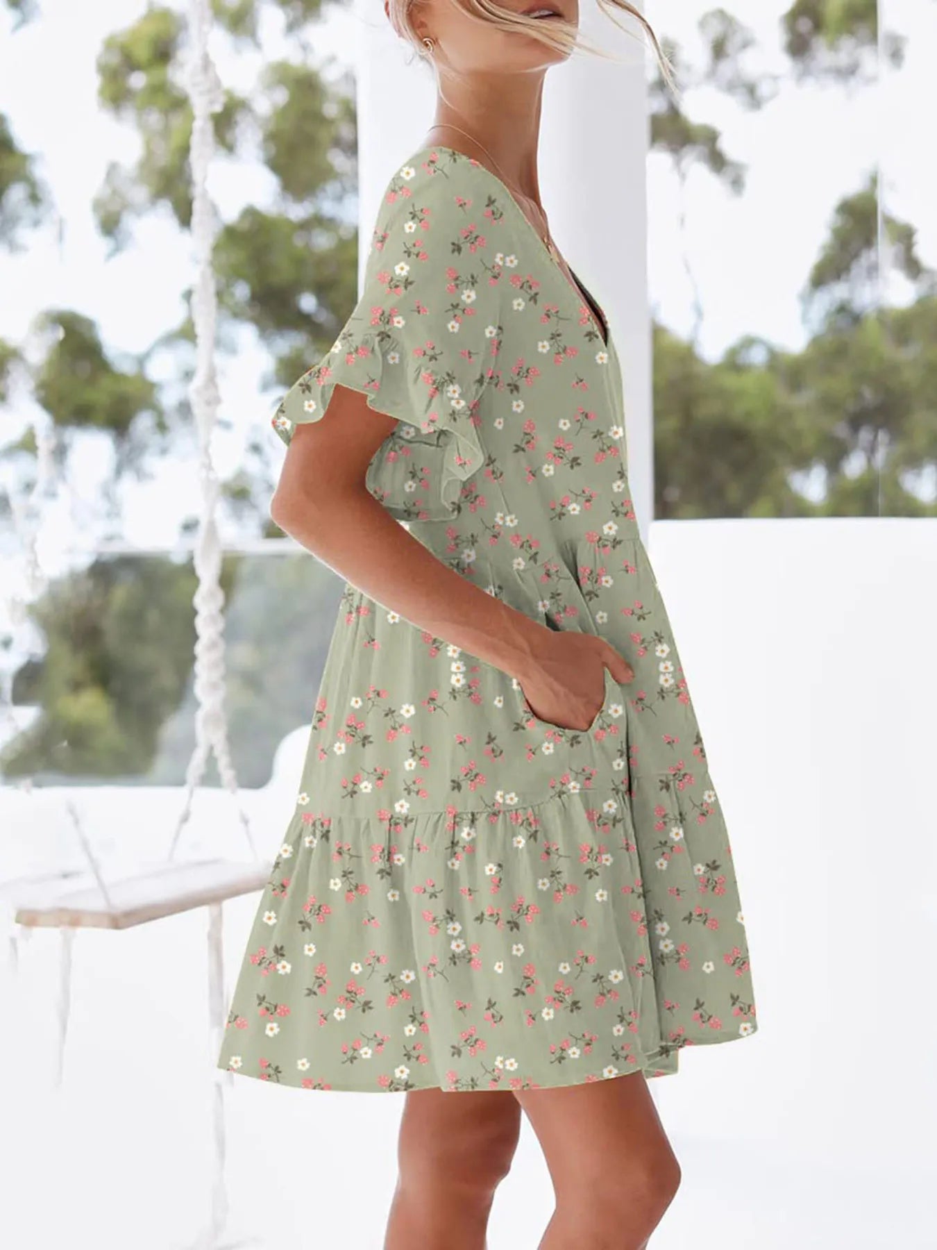 - Features:Tiered,Pocketed,Ruffled