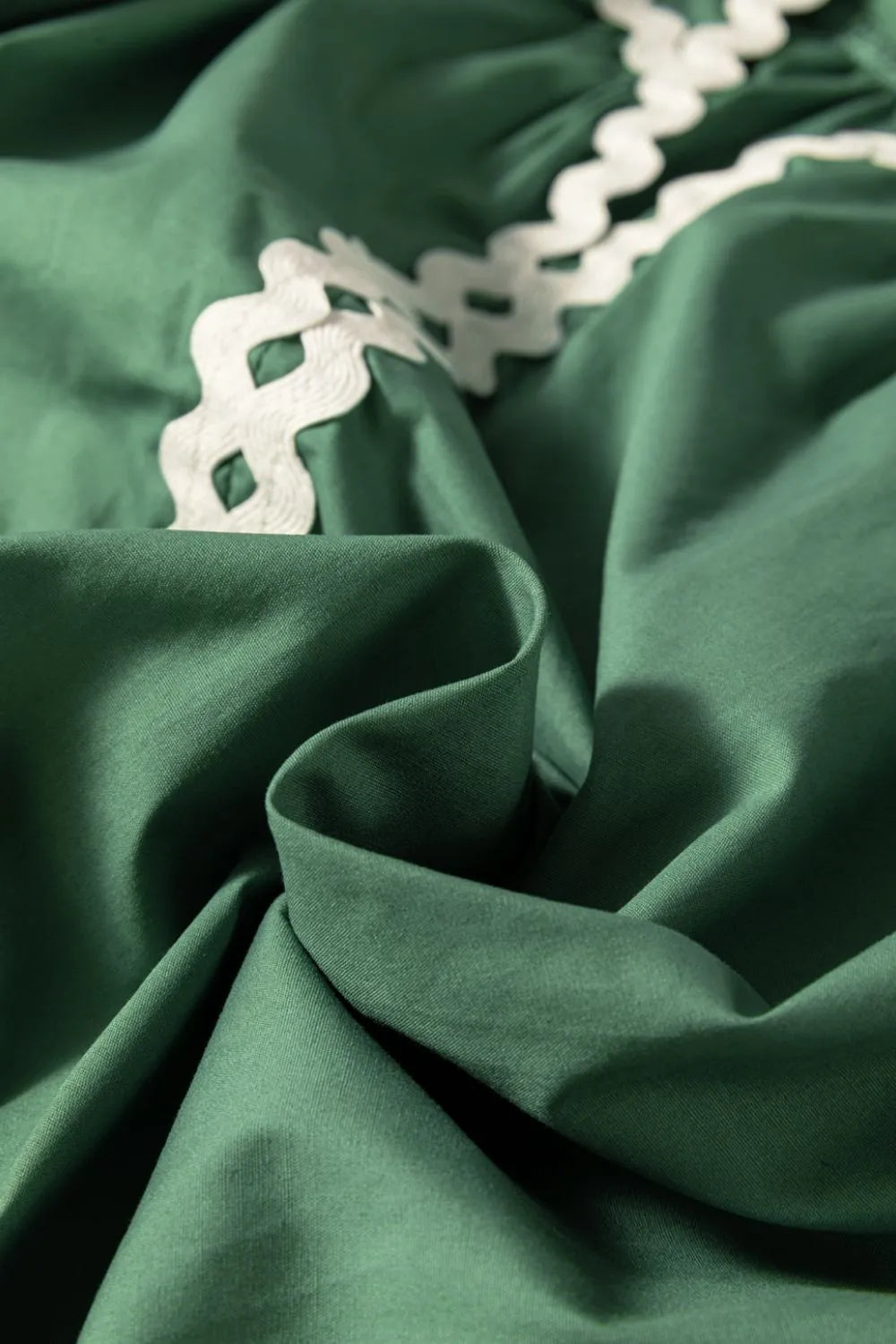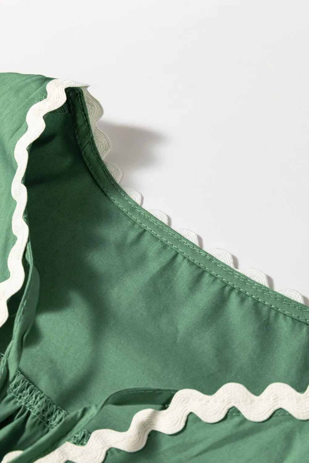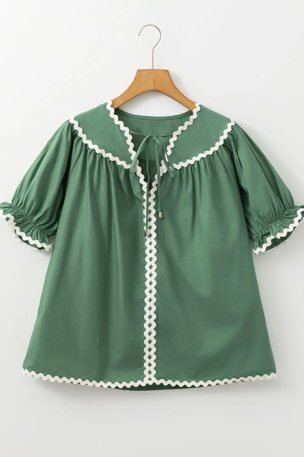 Ric Rac Trim Tie Neck Short Sleeve Blouse