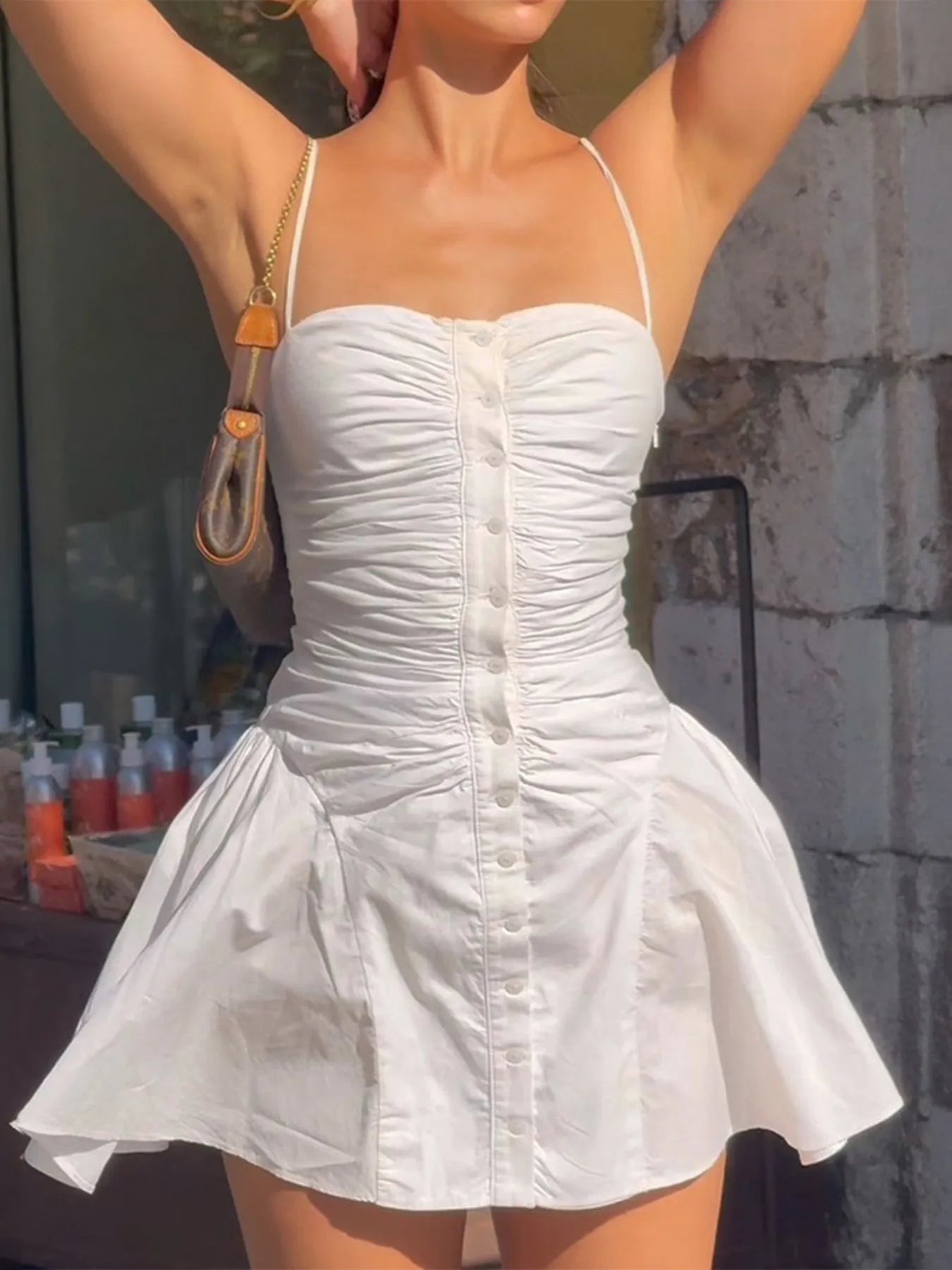 - Features:Buttoned,Ruched