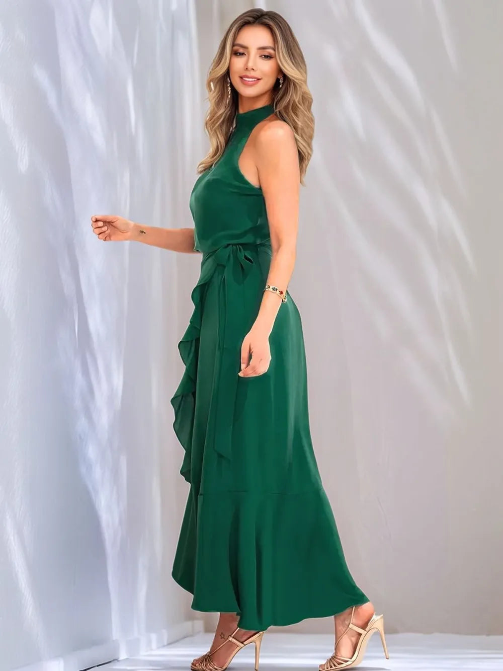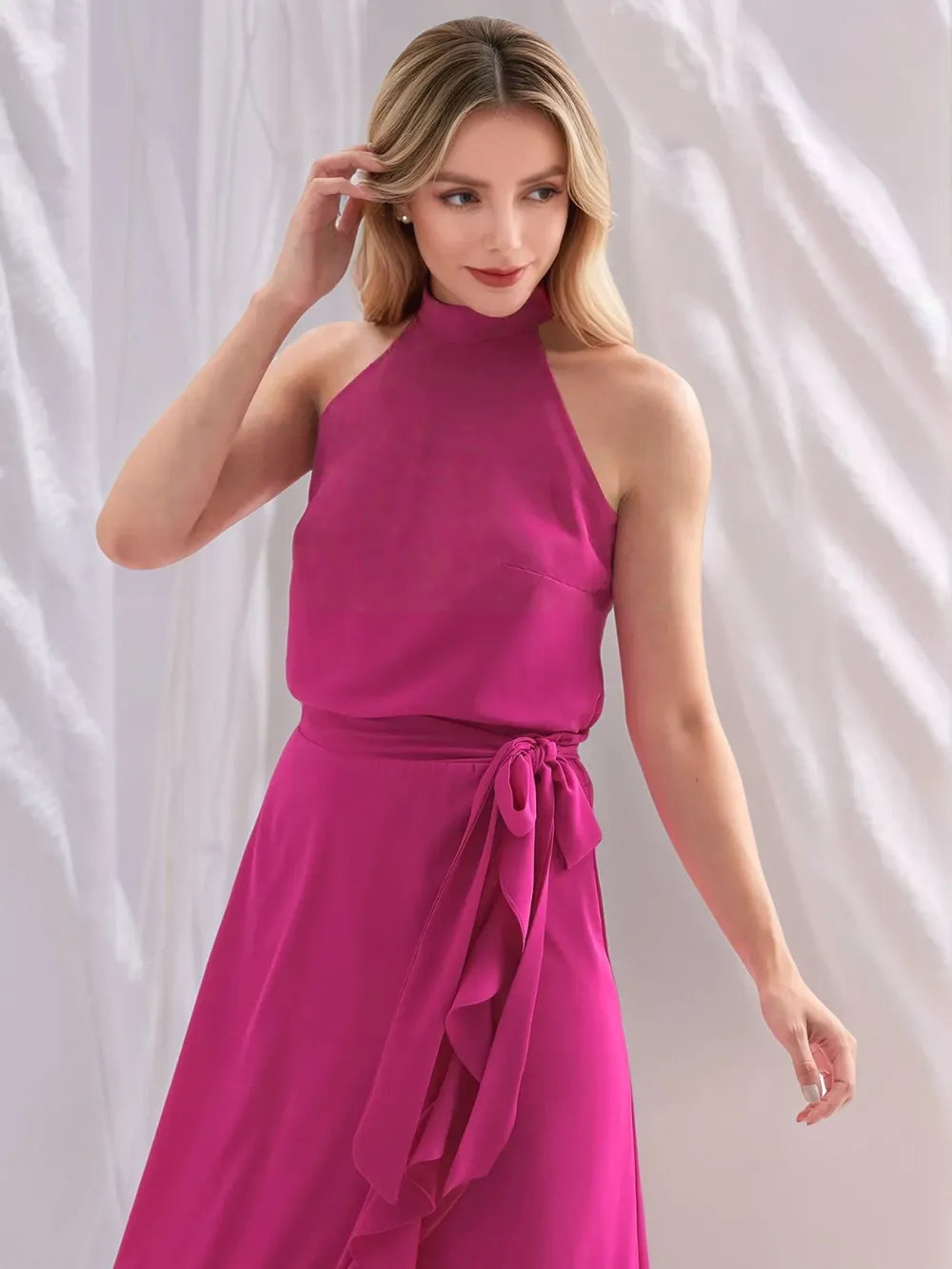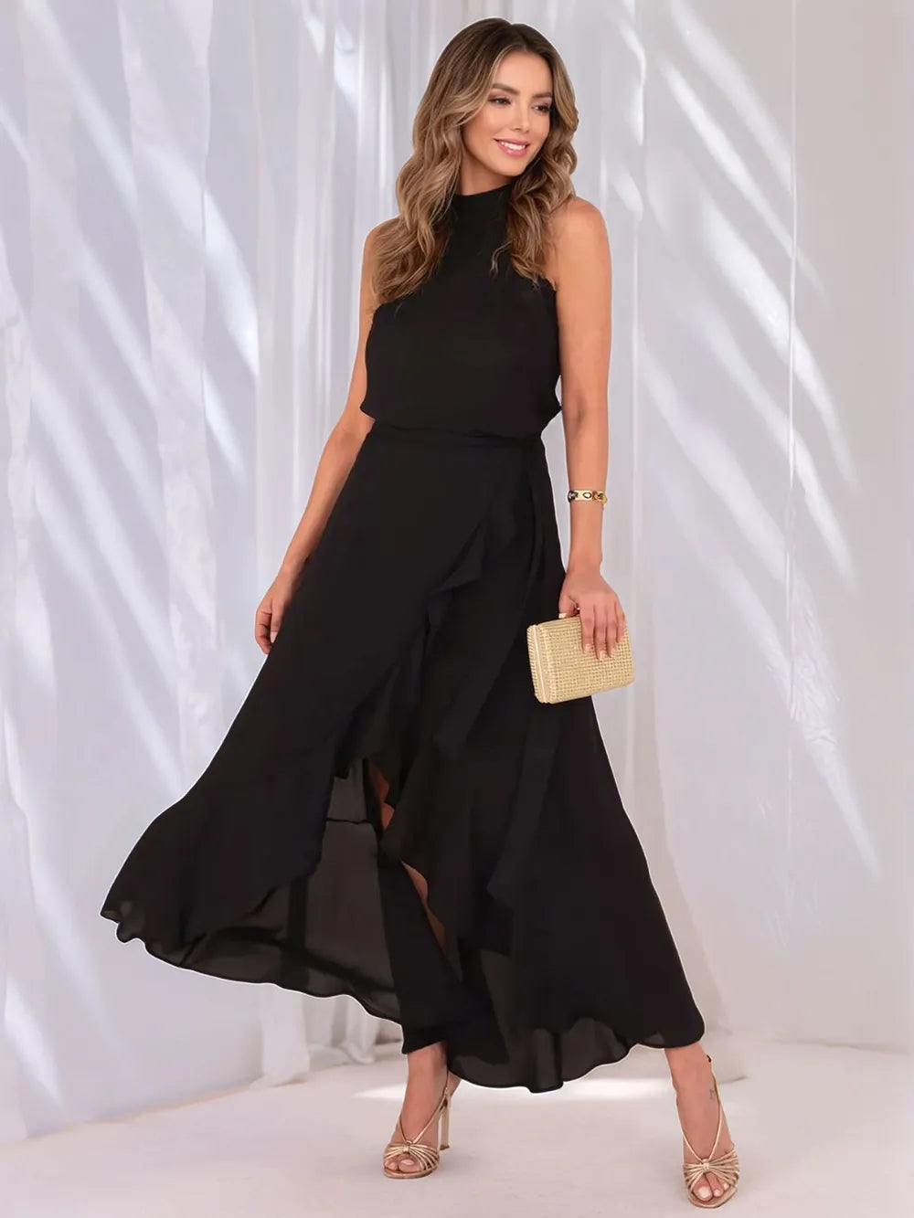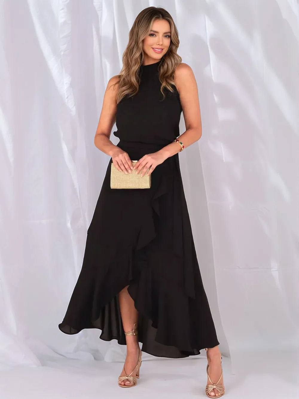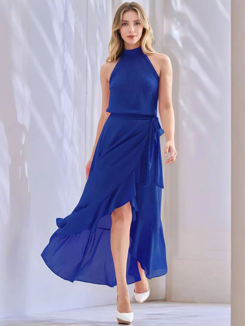 - Features: Tied, Ruffled, Slit, High-Low