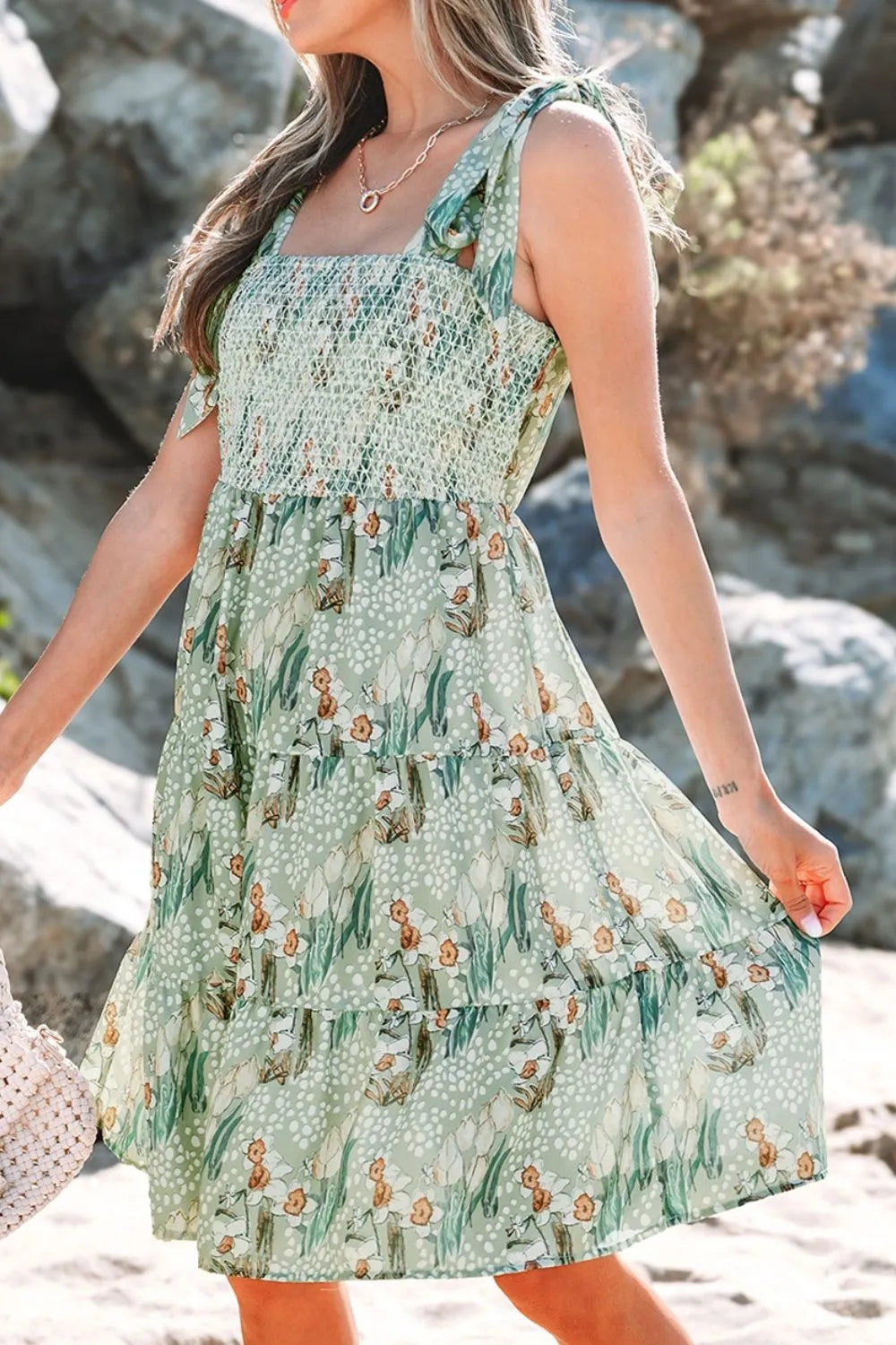 - Features:Tied,Smocked,Tiered,Ruffled