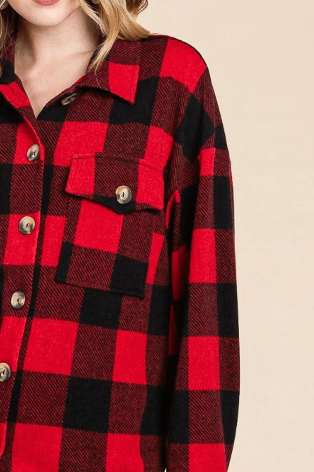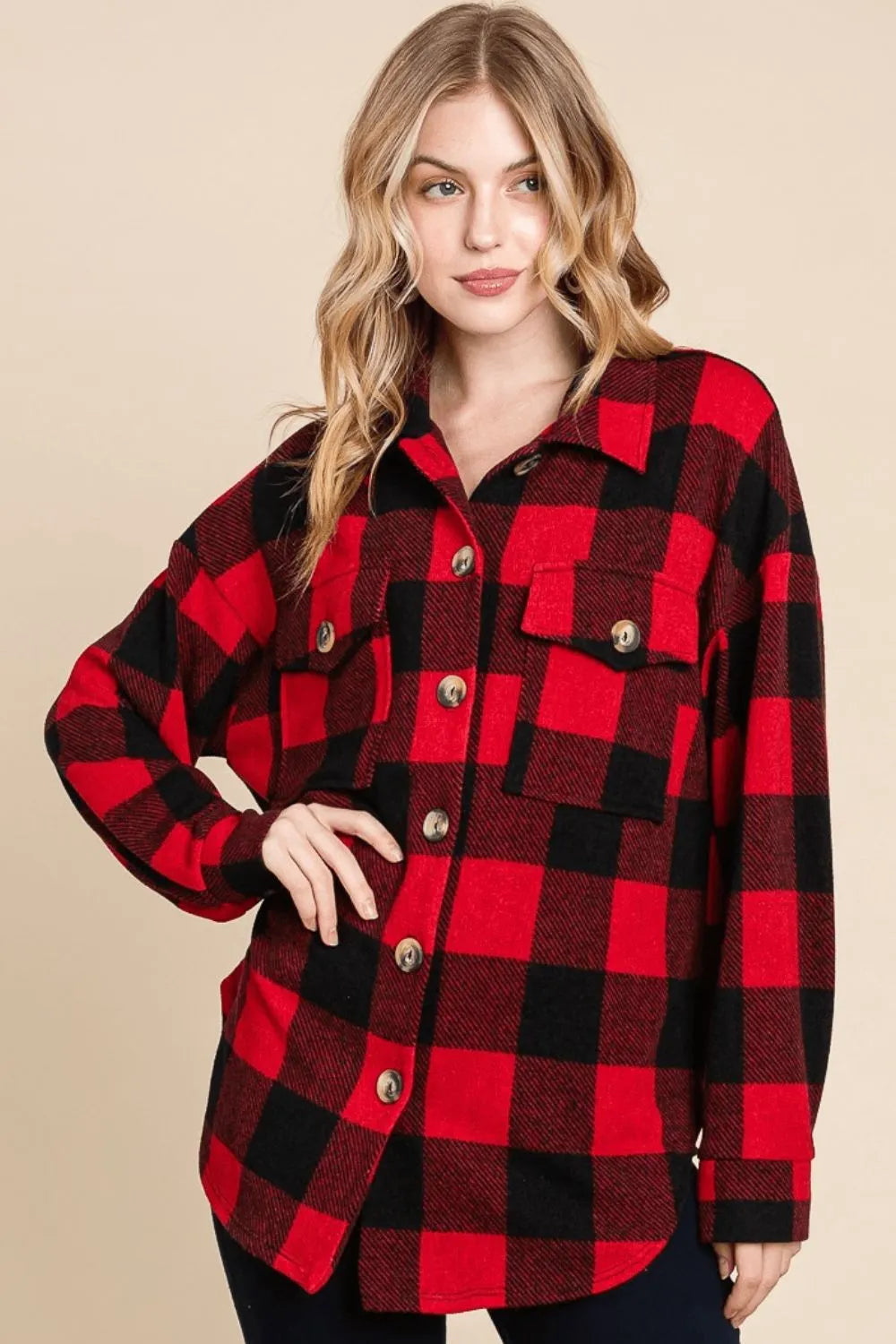 - Features: Basic style, Buttoned, Pocketed