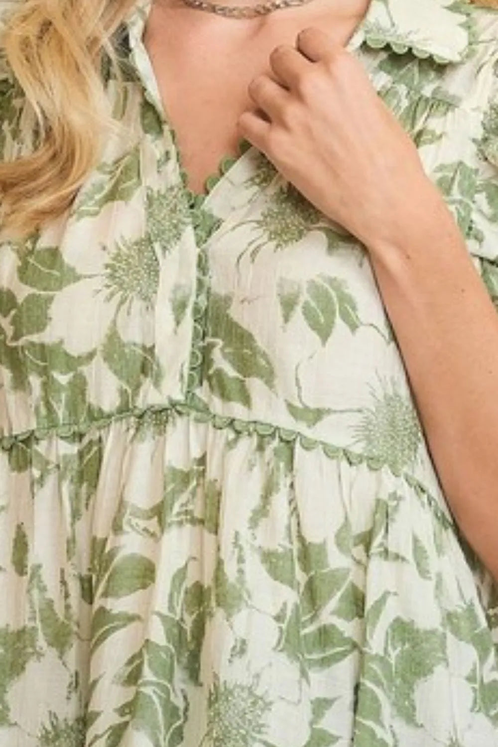 Umgee Full Size Botanical Print Babydoll Top Plus Size