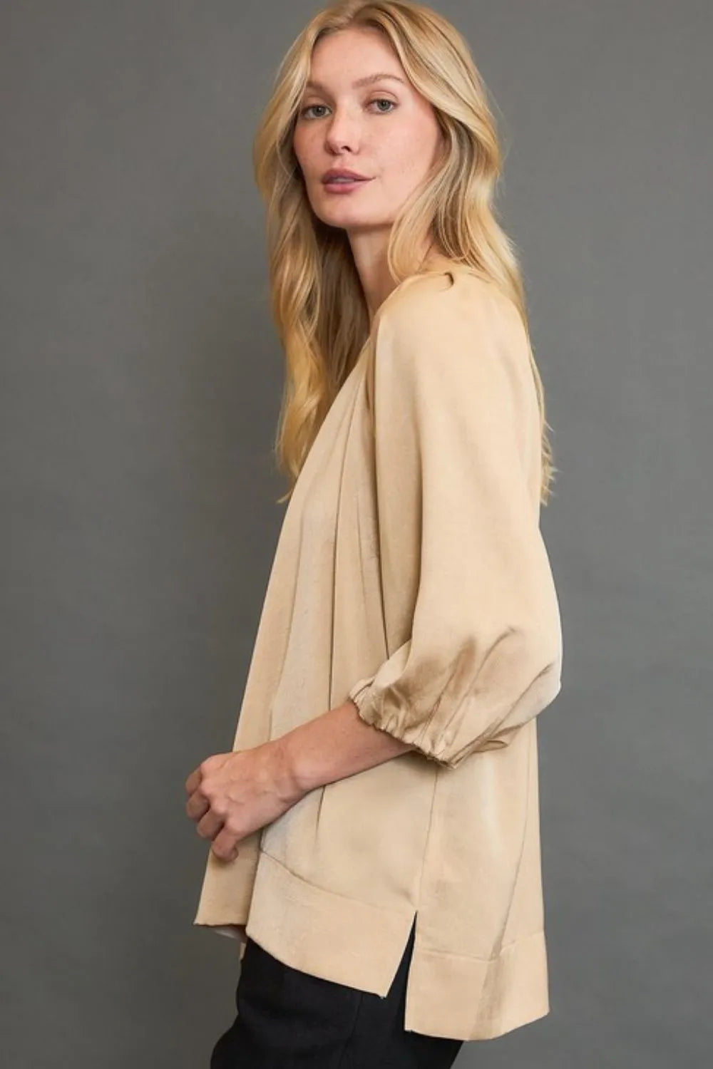 Elevate your wardrobe with this crinkled satin top, perfect for adding a touch of elegance to any outfit. The crinkled texture adds visual interest and depth to the design. Versatile enough to be dressed up for special occasions or dressed down for a chic everyday look.